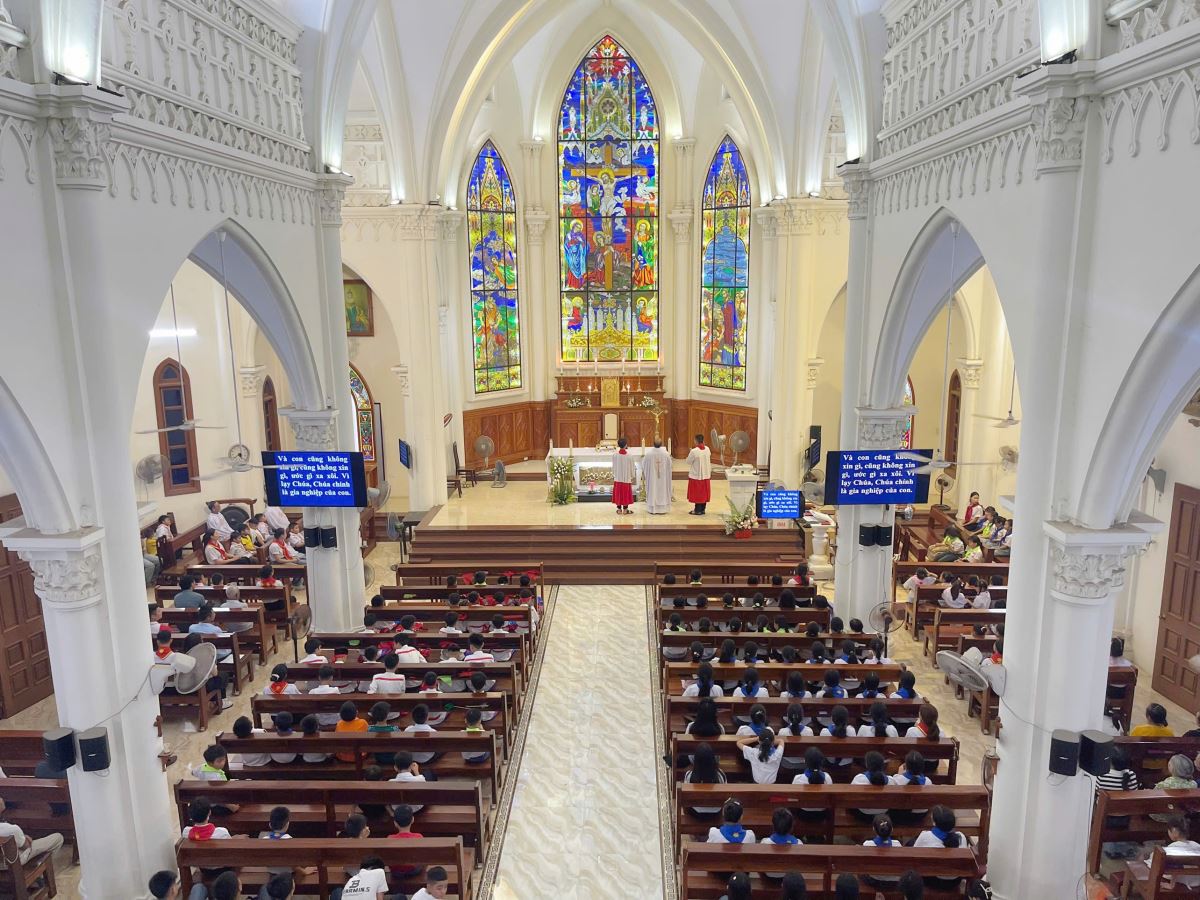 Sau các hoạt động trò chơi và thi đua, cộng đoàn cùng nhau tham dự Thánh lễ. Trong bầu khí linh thiêng, mọi người hiệp lòng cầu nguyện cho các em thiếu nhi luôn được sống trong bình an, chăm ngoan và lớn lên trong ân sủng của Thiên Chúa.