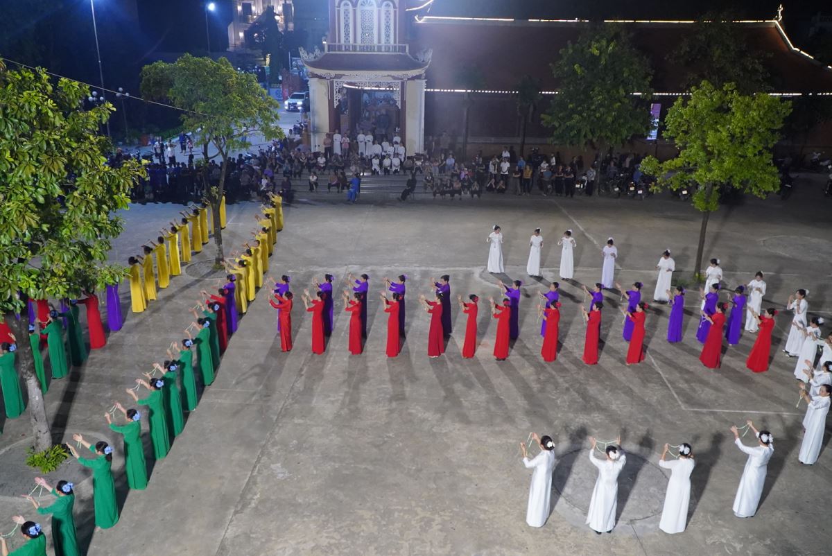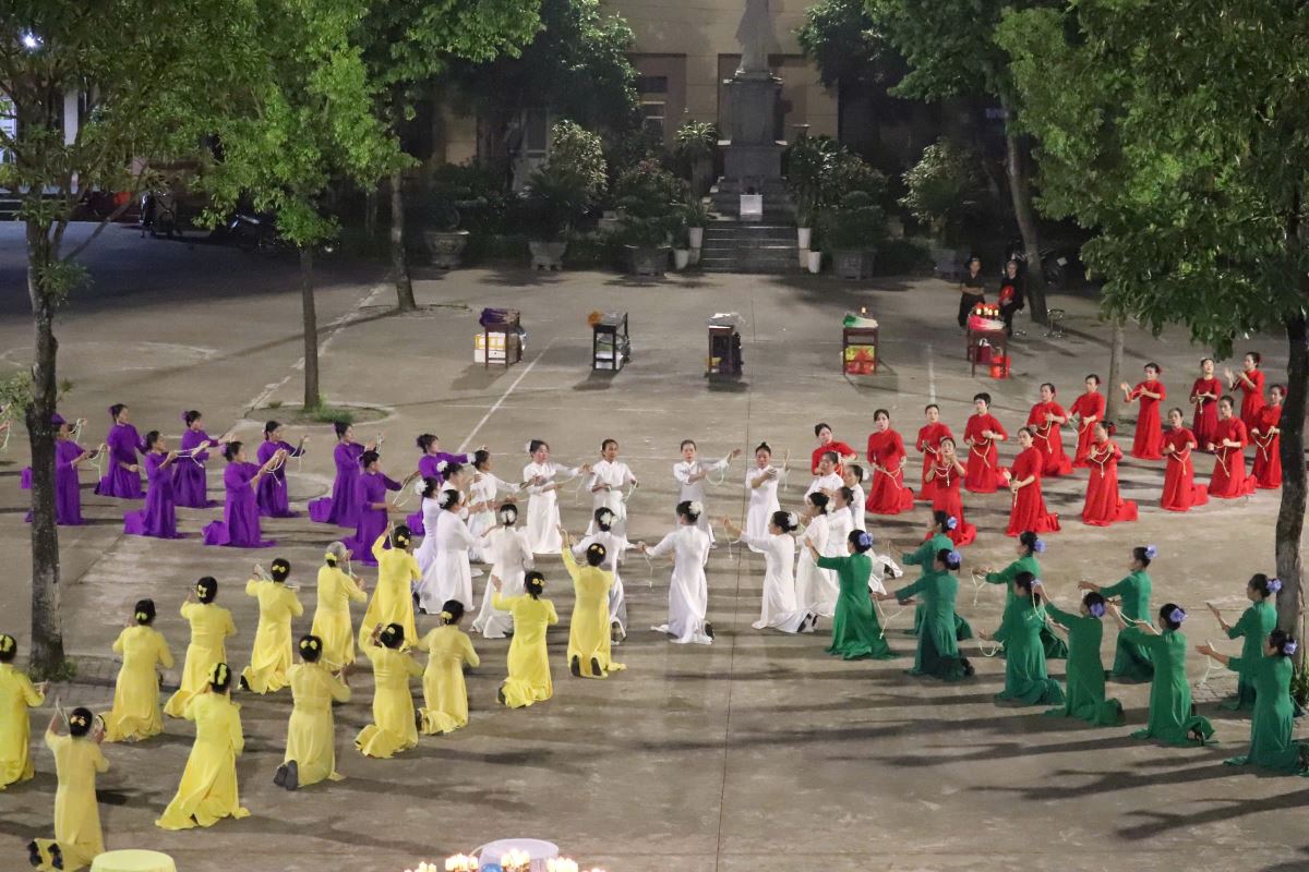 Khi những lời ca tôn vinh Mẹ được cất lên thì những điệu múa uyển chuyển, nhẹ nhàng và duyên dáng của các chị em hoa viên cũng được hoà nhịp tạo nên một khung cảnh thật sống động, thanh nhã và sốt sáng.