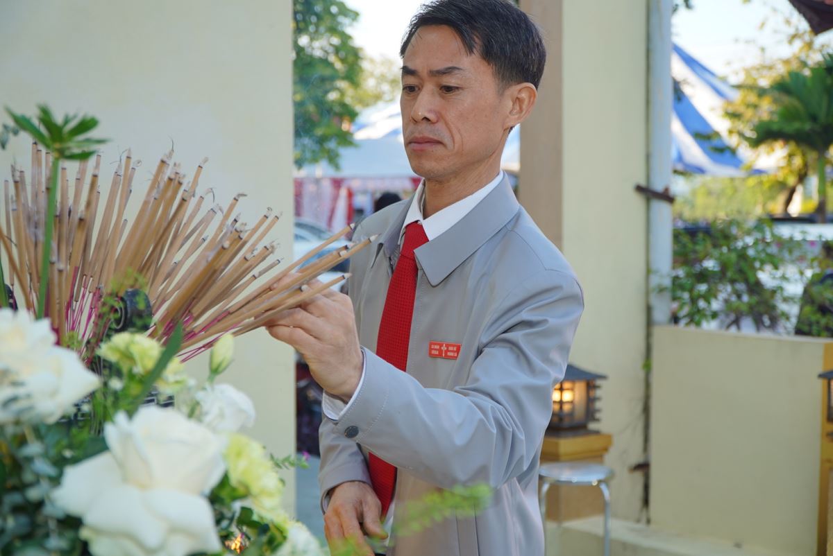 Tiếp đến, nghi thức hành hương được cử hành vào lúc 15g45 tại tiền sảnh nhà Mục Vụ, do cha Vinh Sơn Vũ Văn Nguyện chủ sự.