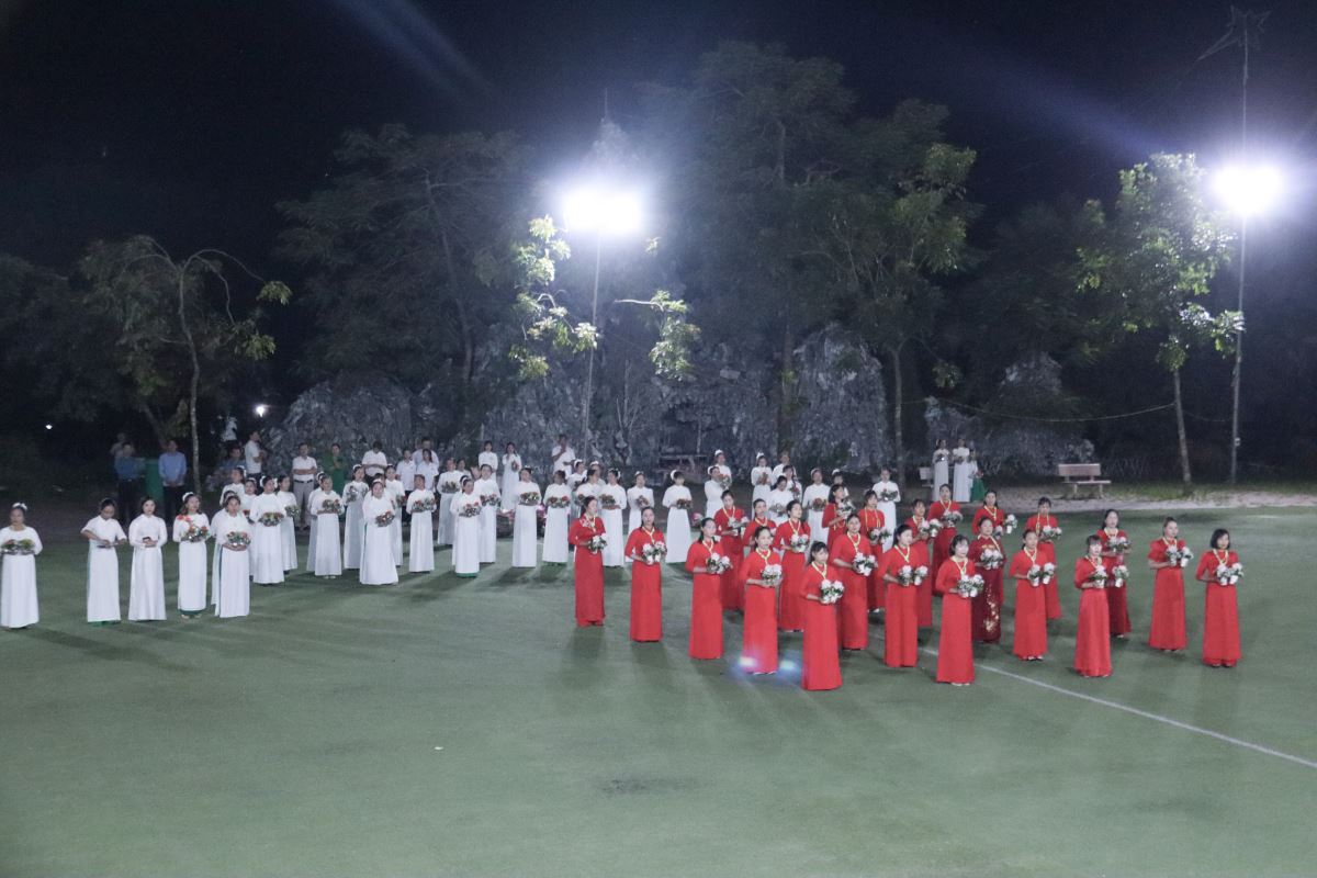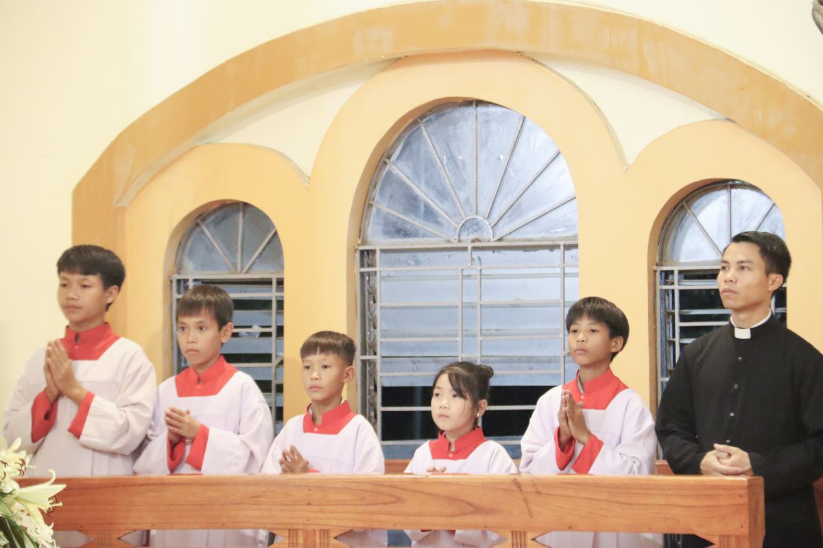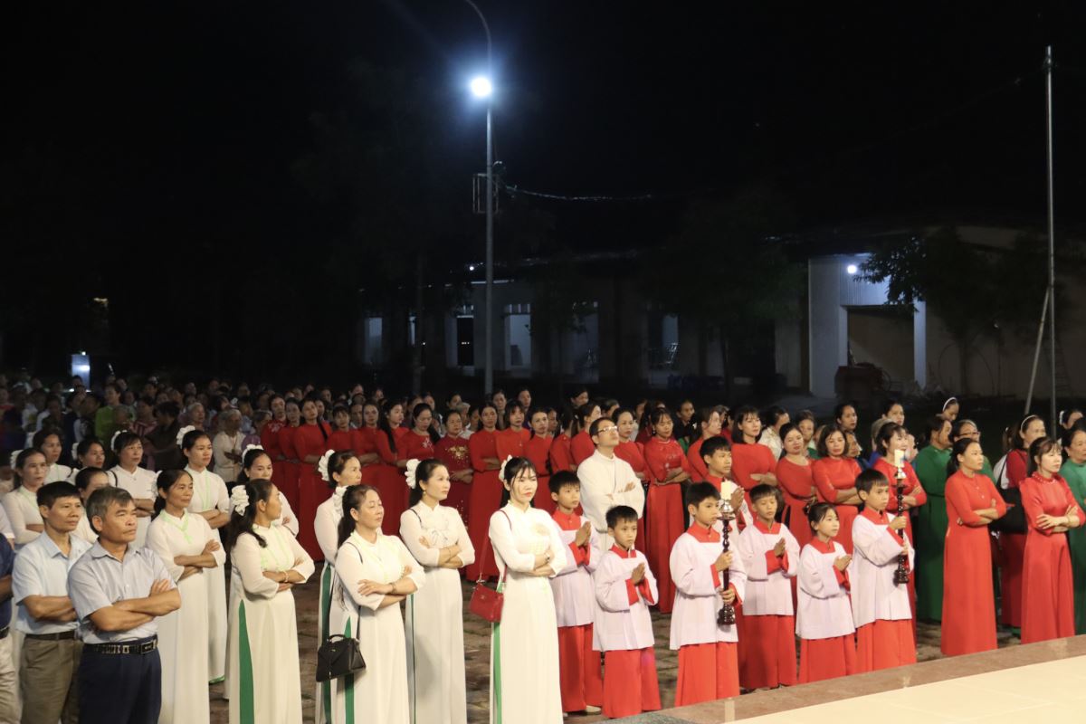 Đúng 18h45, trong tiếng nhạc rộn ràng và ánh sáng lung linh, hai đội hoa của Giáo xứ Mậu Đông và Chuẩn xứ Mậu A đã thay mặt cộng đoàn dâng lên Mẹ những tràng chuỗi Mân Côi, những đóa hoa tươi thắm và những lời ca, điệu múa đầy tâm tình con thảo. Mỗi cử điệu, mỗi câu hát đều thể hiện lòng biết ơn, tôn kính và phó thác của đoàn con miền sơn cước trước tình yêu hiền mẫu của Đức Maria.