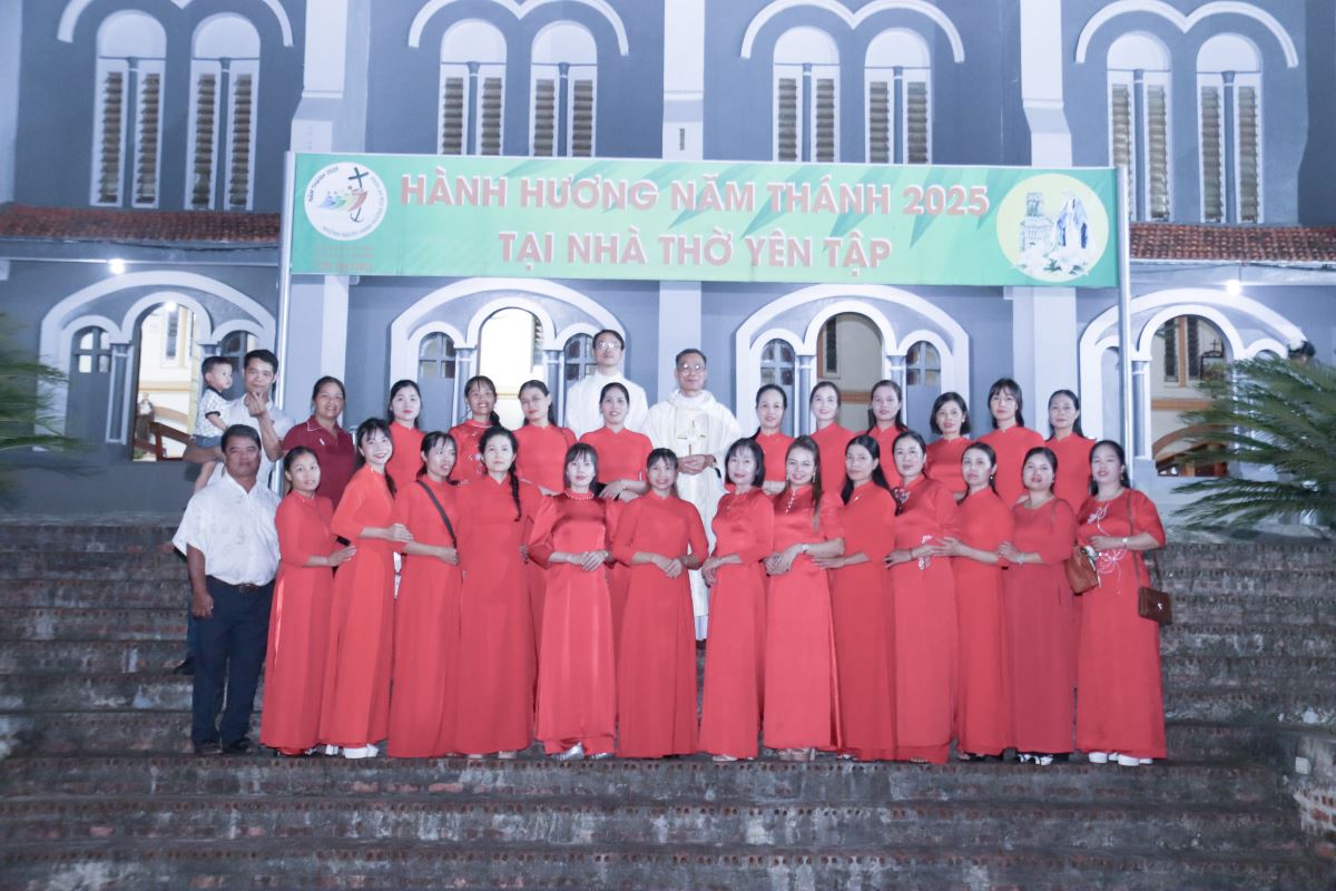 WGPHH - Chiều tối ngày 22 tháng 10 năm 2025, trong bầu khí linh thiêng của tháng Mân Côi, 120 tín hữu thuộc Giáo xứ Mậu Đông và Chuẩn xứ Mậu A đã hành hương về nhà thờ Yên Tập để dâng hoa kính Đức Mẹ Mân Côi và lãnh nhận hồng ân Năm Thánh 2025. Đoàn hành hương được hướng dẫn bởi Cha Phêrô Phan Kim Huấn – chánh xứ Mậu Đông, cũng là người con của quê hương Giáo xứ Yên Tập. Hiện diện trong buổi hành hương còn có sự hiện diện của quý thầy, quý dì, cùng đông đảo cộng đoàn dân Chúa Giáo xứ Yên Tập.