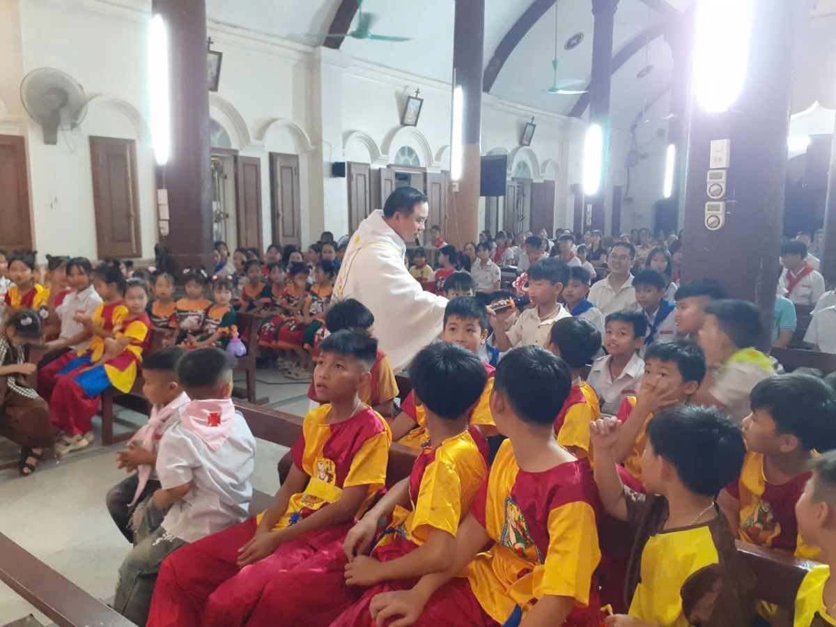 Sau cuộc rước, cộng đoàn cùng tham dự Thánh lễ Tạ ơn do cha Antôn Maria Phan Văn Trịnh chủ sự. Trong Thánh lễ, cha đặc biệt cầu nguyện cho các em thiếu nhi được luôn sống ngoan ngoãn, hiếu thảo, biết yêu thương và chia sẻ. Cha cũng nhắn nhủ các bậc phụ huynh hãy trở nên tấm gương sáng để giúp con cái lớn lên trong đức tin và tình yêu thương.