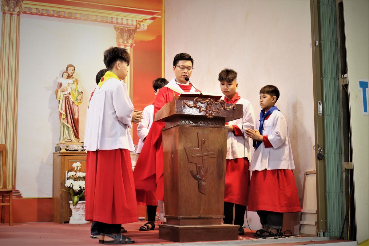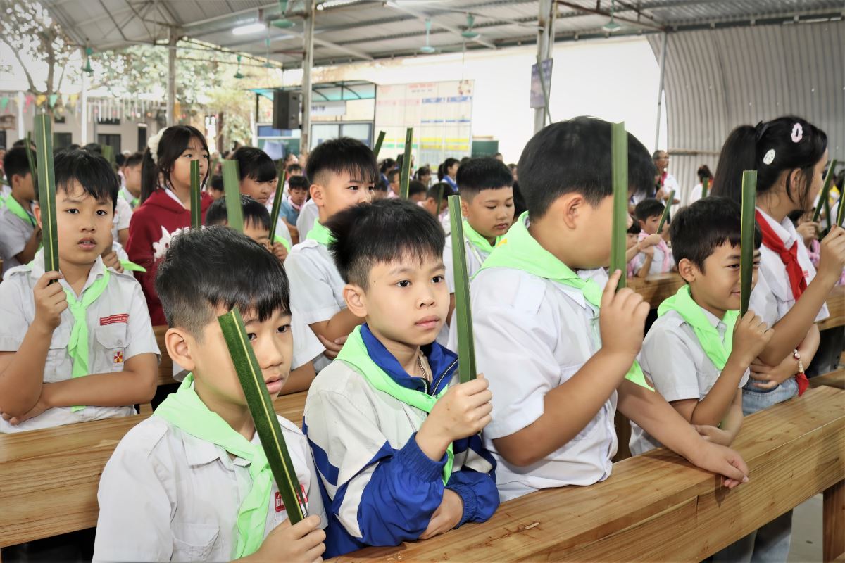 Ngay từ đầu thánh lễ, các em thiếu nhi đã cùng nhau cầm lá trên tay, rước vào nhà thờ, tái hiện lại hình ảnh Chúa Giêsu tiến vào thành Giêrusalem trong niềm hân hoan của dân chúng. Tuy nhiên, bầu khí vui tươi ấy dần lắng lại khi cộng đoàn bước vào phần phụng vụ Lời Chúa với bài Thương Khó Của Chúa Giêsu.
