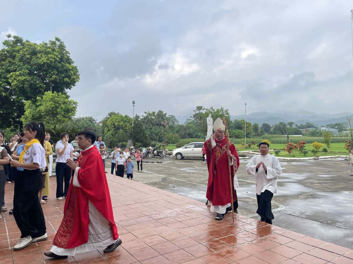 WGPHH - Vào lúc 8 giờ sáng thứ Bảy ngày 16 tháng 8 năm 2025, cộng đoàn giáo xứ Yên Phú hân hoan chào đón Đức Cha Phụ tá Phaolô Nguyễn Quang Đĩnh đến thăm mục vụ và chủ sự Thánh lễ ban Bí tích Thêm Sức cho 159 em thiếu nhi trong giáo xứ.