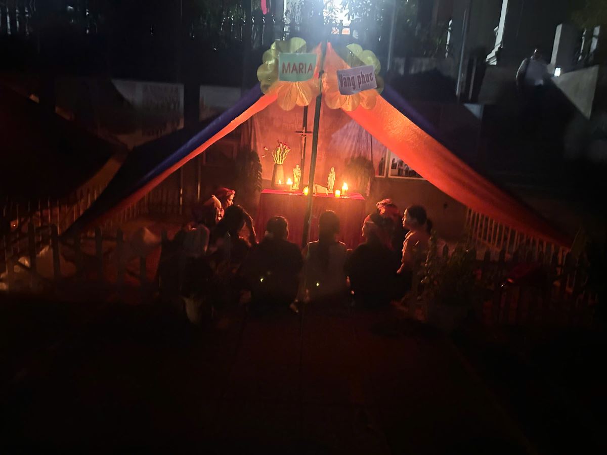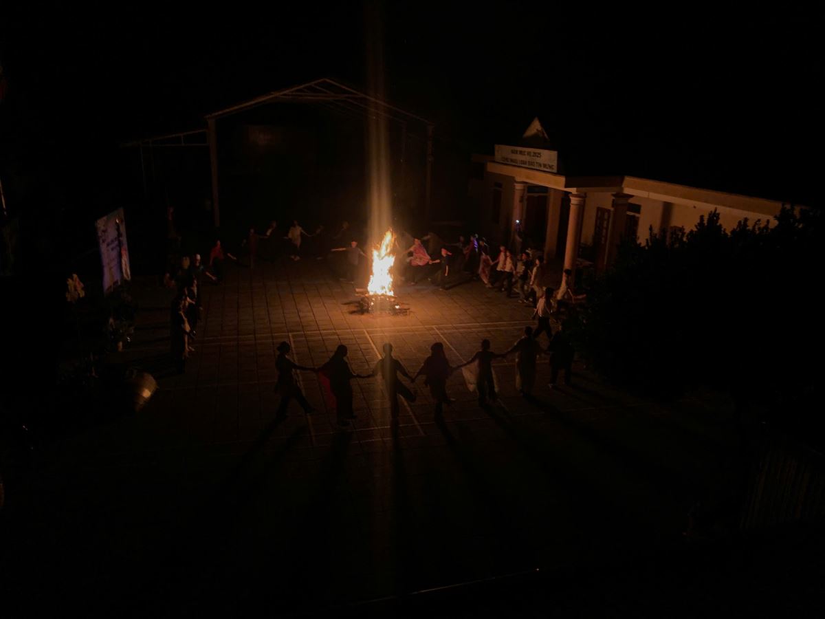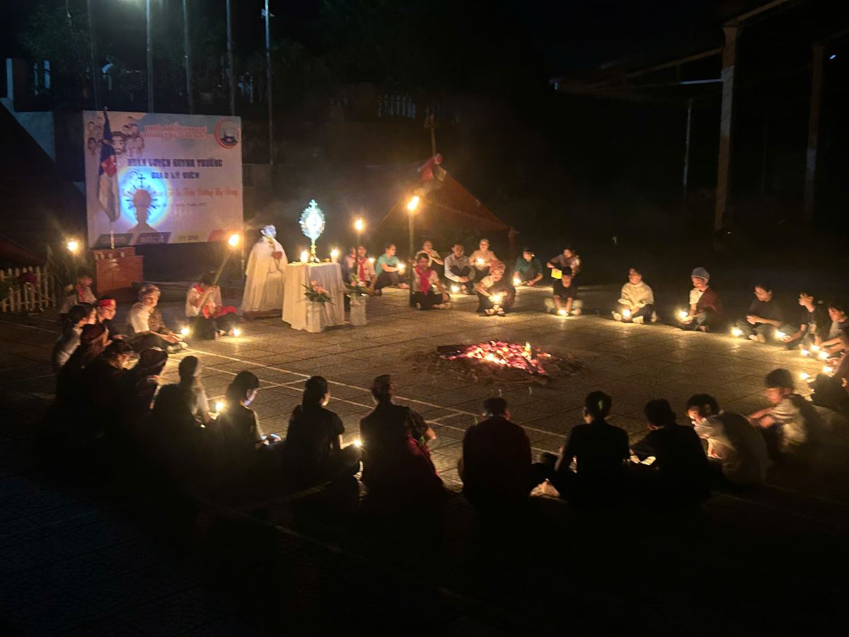 Vào tối ngày 27/9, các tham dự viên đã bước vào chương trình Lửa Thiêng Thánh Thể. Với chủ đề “Bước cùng Chúa Giêsu trên con đường Hy Vọng”, chương trình đã tái hiện những trang Tin Mừng, làm nổi bật các nội dung thực hành của khóa huấn luyện. Trong bầu khí linh thiêng, các tham dự viên như được dẫn bước vào khung cảnh Thánh Kinh, sống lại những câu chuyện Tin Mừng đầy sức sống. Cao điểm là giây phút cùng nhau quây quần bên Chúa Giêsu Thánh Thể, với những ánh lửa bập bùng trong đêm tối, để trái tim mỗi người bừng cháy niềm tin yêu, hy vọng và ơn gọi phục vụ.