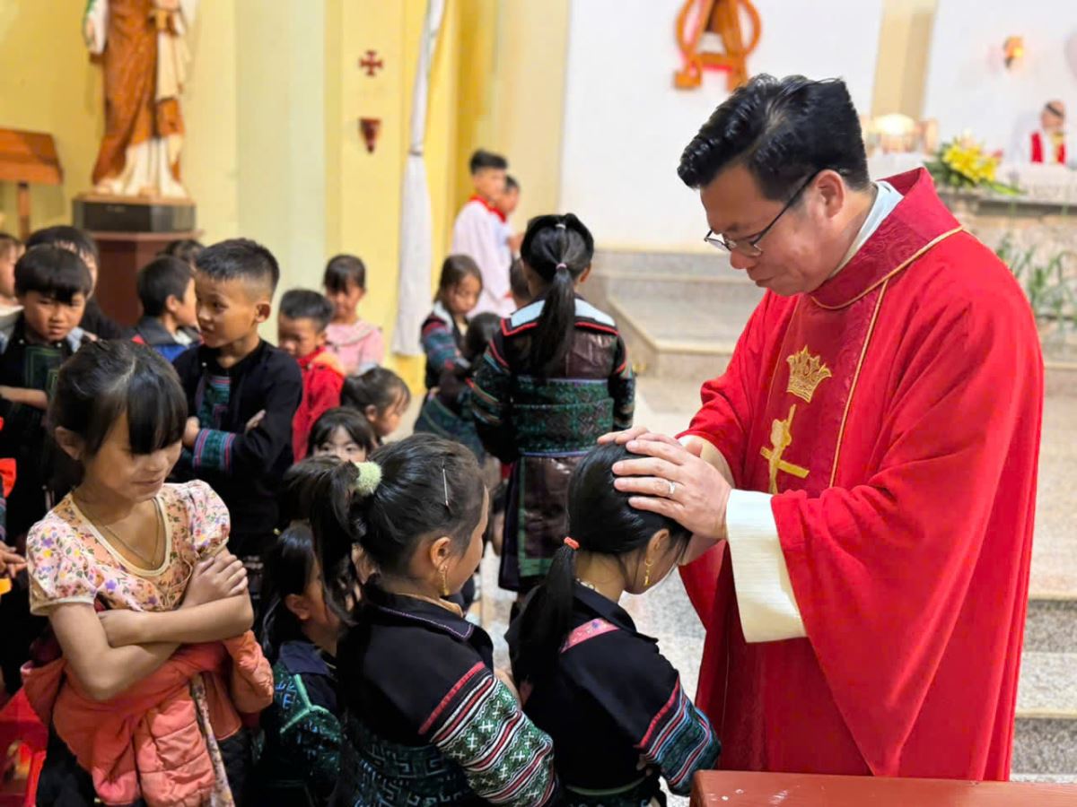 Sau thánh lễ, mọi người cùng tham dự giờ dâng hoa kính Thánh Tâm Chúa Giêsu với cộng đoàn giáo xứ. Một chút quà nhỏ dành tặng cho các em và bà con giáo dân. Cầu mong cho những nỗ lực của những tông đồ đang gieo rắc Tin Mừng trên cánh đồng truyền giáo nơi đây tiếp tục được lớn lên và trổ sinh nhiều bông hạt.