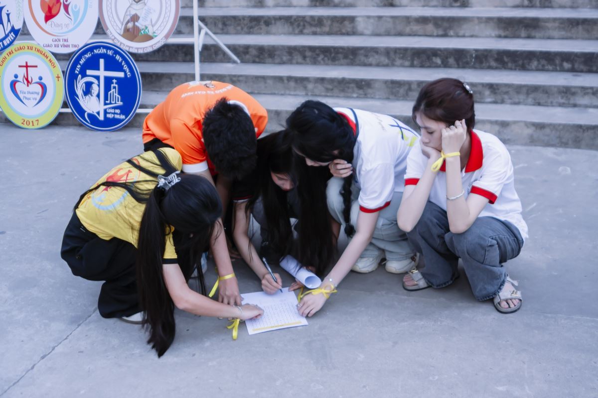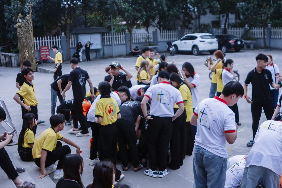 Sau Thánh lễ, các bạn trẻ tiếp tục tham gia phần Team Building với nhiều trò chơi sôi động, góp phần tăng thêm tình hiệp nhất và niềm vui gặp gỡ.