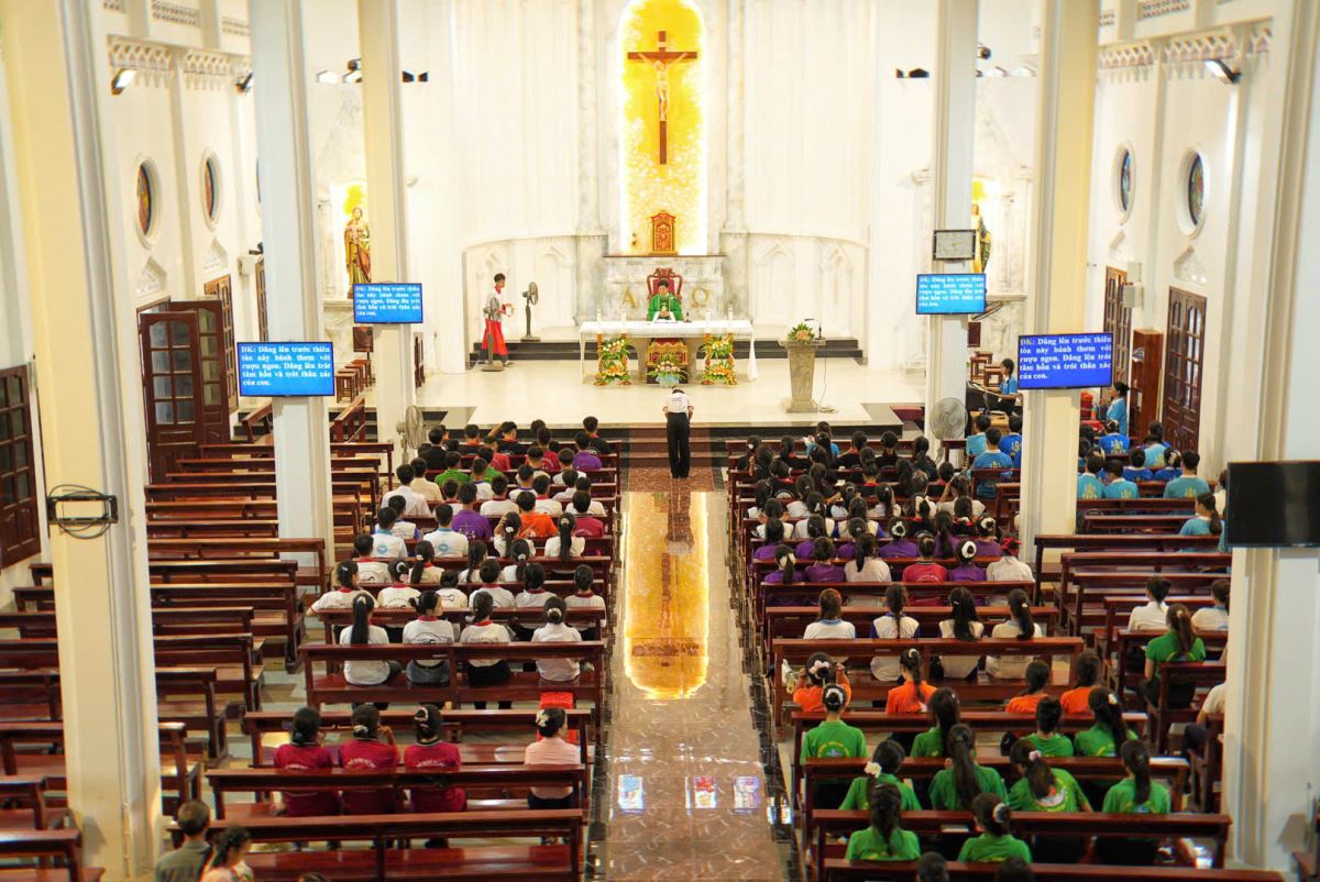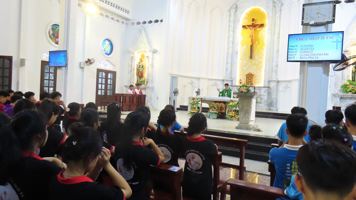 Đỉnh cao của ngày khai giảng là Thánh Lễ được cử hành vào lúc 16h30. Trong bầu khí sốt sắng và trang nghiêm, mọi người cùng hiệp dâng lời cầu nguyện, phó thác một năm hoạt động mới cho Thiên Chúa, để mỗi người nỗ lực thực hiện với niềm vui, tình yêu và đầy sức năng động của tuổi trẻ trong việc phục vụ.