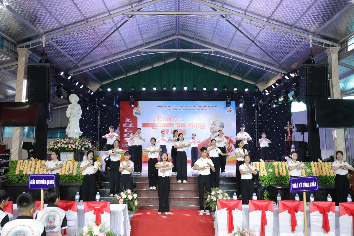 WGPHH - Vào lúc 08g00’ sáng thứ Hai, ngày 28 tháng 7 năm 2025, tại nhà thờ giáo xứ Sông Chảy - giáo hạt Hà- Tuyên- Hùng, đã diễn ra ngày hành hương Năm Thánh, gặp mặt giới trẻ toàn giáo hạt, kết hợp mừng lễ quan thầy Inhaxiô Loyola lần thứ 2, với chủ đề: “Người trẻ bừng cháy Tin Mừng hy vọng”. Tham dự ngày gặp mặt có sự hiện diện của cha quản hạt Giuse Nguyễn Viết Hiệp, cha Chủ tịch Ủy ban Giới Trẻ giáo phận Đaminh Hoàng Thế Bằng, Cha Giuse Trần Văn Chỉnh - quản hạt Tuyên Quang (giáo phận Bắc Ninh), quý cha trong và ngoài giáo hạt, quý thầy phó tế, quý thầy, quý dì, đại diện Ban Điều Hành giới trẻ giáo phận, cùng gần 500 bạn trẻ đến từ các giáo xứ trong giáo hạt.
