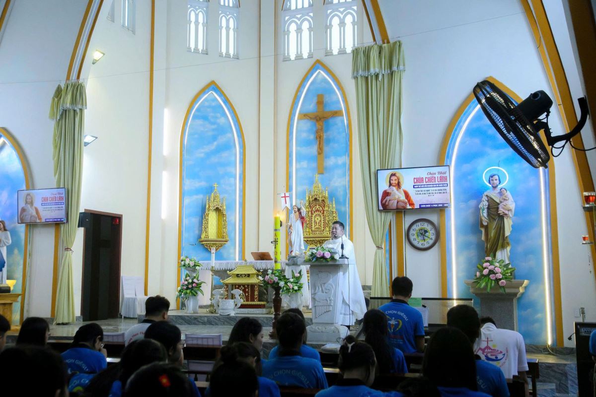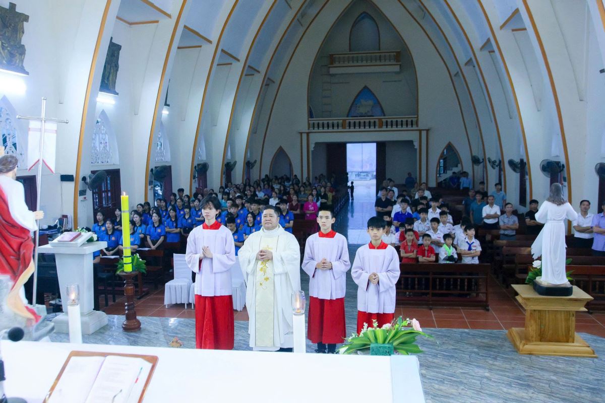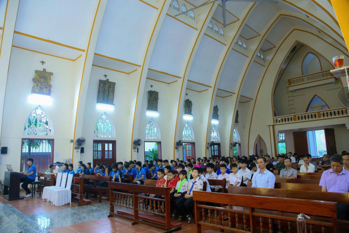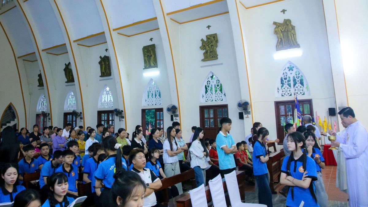 Kết thúc phần gặp gỡ, các bạn trẻ quy tụ tham dự Thánh lễ do cha Giuse Nguyễn Xuân Trường chủ tế.