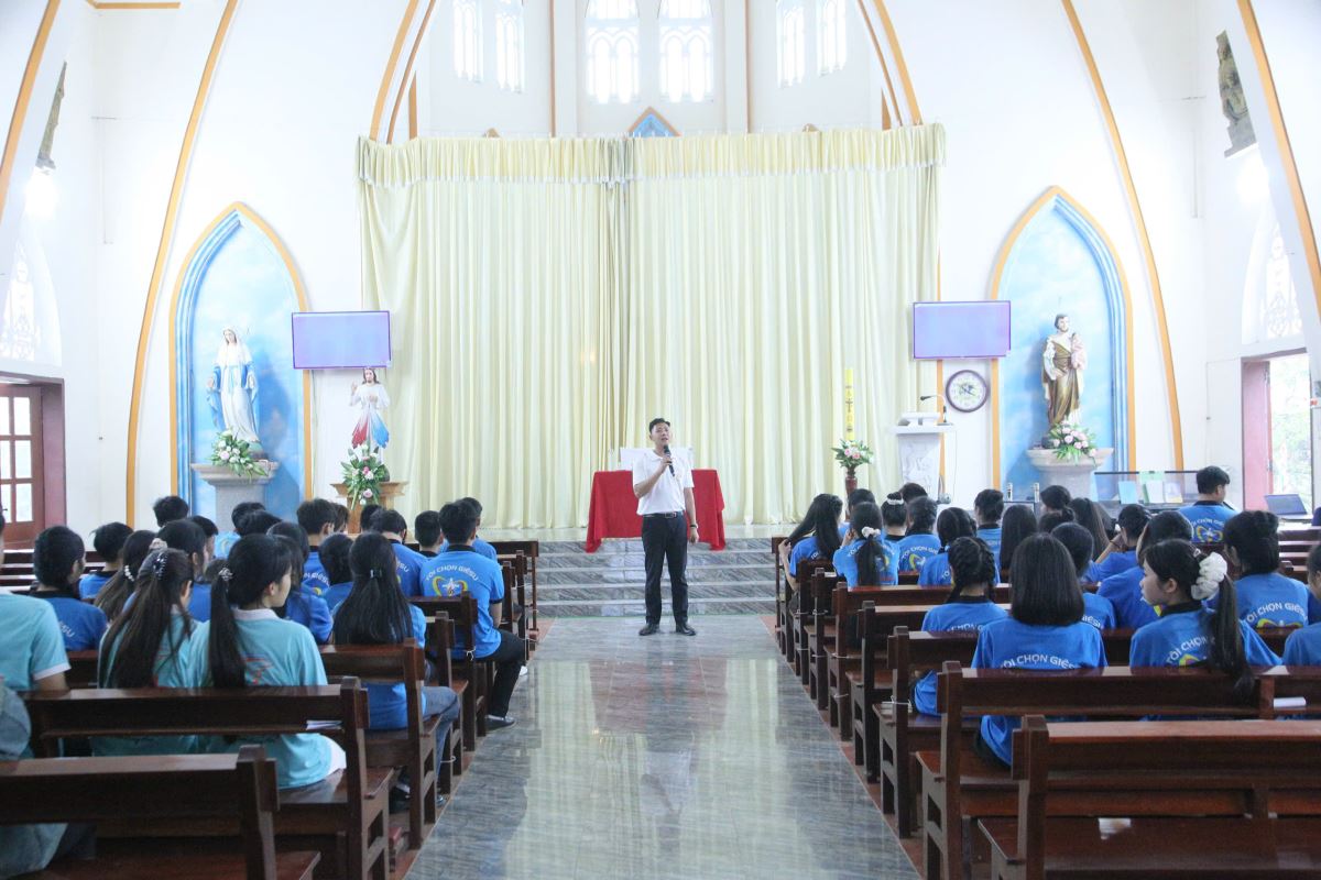Nội dung thường huấn xoay quanh các chủ đề trọng tâm: - Người môn đệ thừa sai – do cha Giuse Nguyễn Xuân Trường, đặc trách Giới trẻ Giáo hạt, chia sẻ.