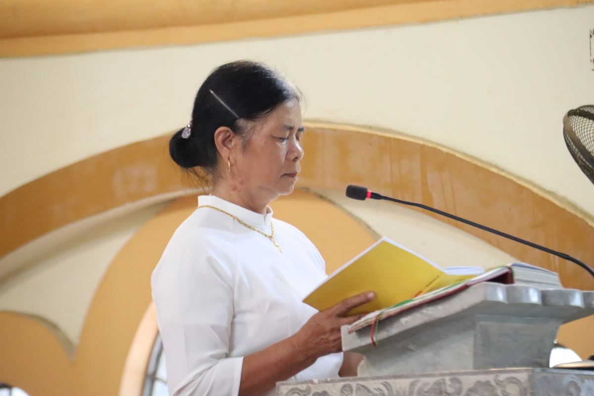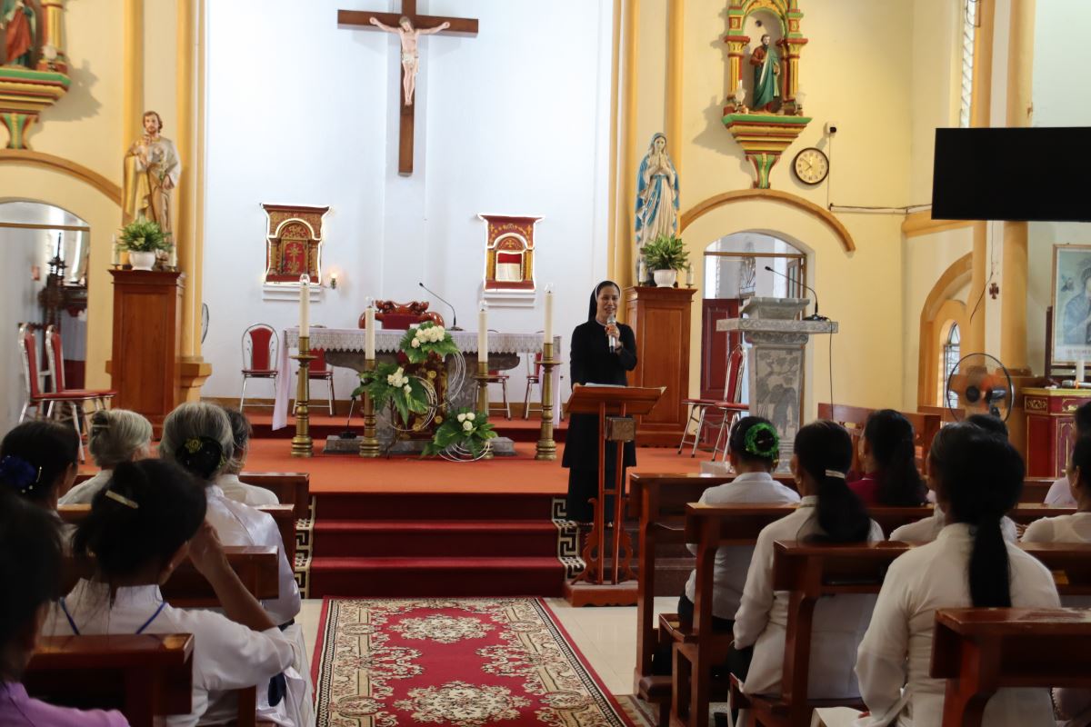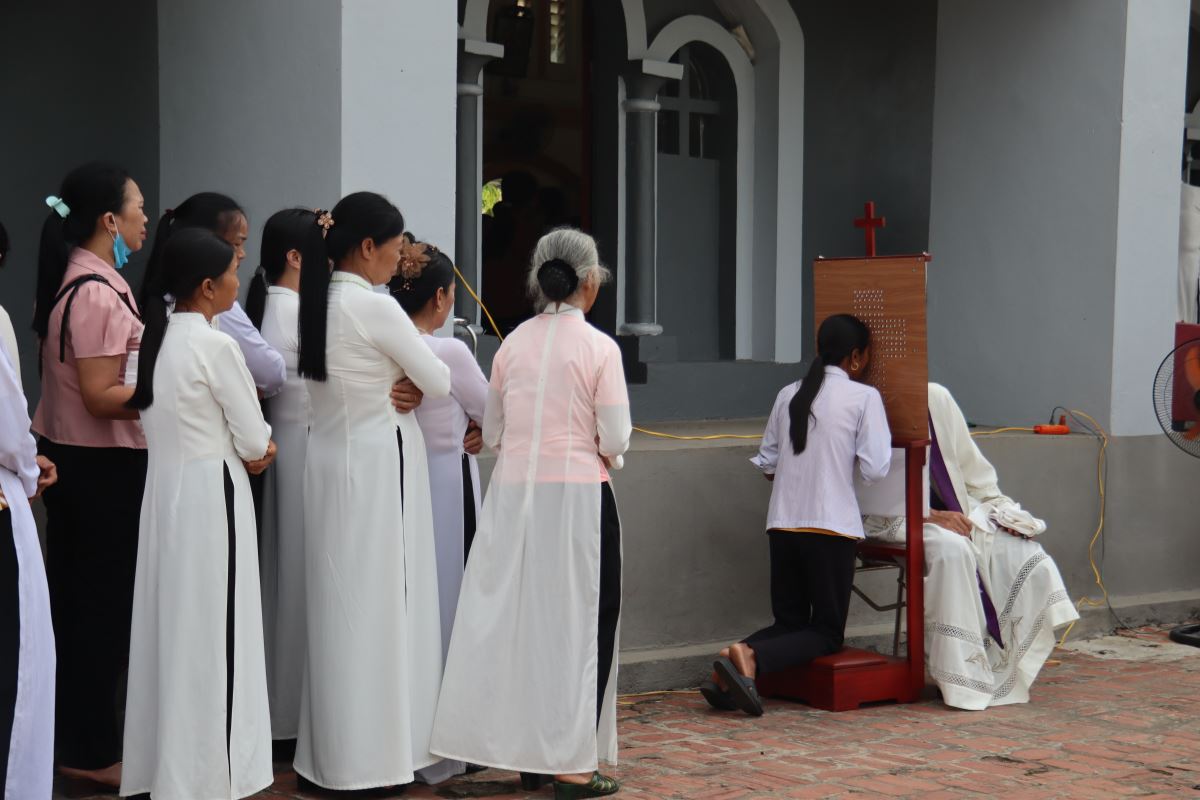 Sau đó, cộng đoàn bước vào giờ tĩnh tâm, xét mình, do quý Dì Dòng Mến Thánh Giá hướng dẫn, giúp mọi người hồi tâm, chuẩn bị tâm hồn để lãnh nhận Bí tích Hòa giải do quý Cha trong Giáo hạt đảm trách.