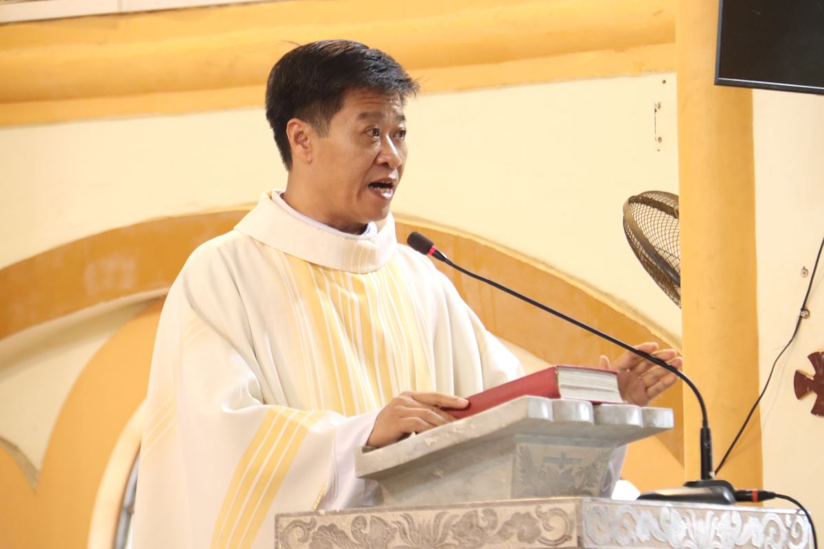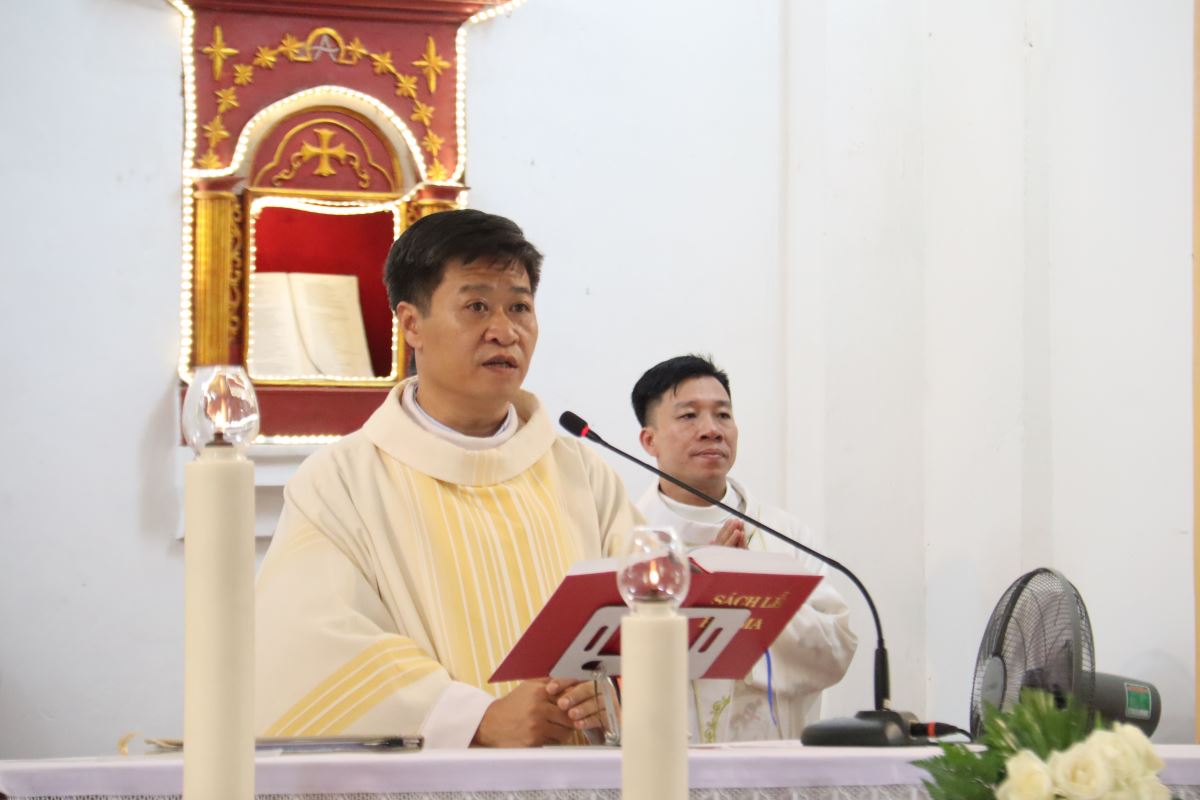 Trong bài giảng lễ, Cha Trưởng hạt Phaolô mời gọi cộng đoàn cách riêng các thành viên Huynh đoàn Đaminh chiêm ngắm gương sáng đời sống thánh Đaminh: kiên trì cầu nguyện, sống khó nghèo, và dấn thân loan báo Tin Mừng. Từ hình ảnh người mẹ thánh Đaminh mơ thấy con chó ngậm bó đuốc, đến việc Đức Mẹ trao cho ngài chuỗi Mân Côi, cha nhấn mạnh: chính nhờ đời sống cầu nguyện liên lỉ và lòng yêu mến Kinh Mân Côi, thánh Đaminh đã góp phần đưa hàng vạn người lạc giáo quay trở về với Giáo hội. Cha cũng chia sẻ cùng cộng đoàn: “Vào huynh đoàn không phải để ghi danh, mà là để sống tinh thần cầu nguyện như Thánh Tổ phụ đã sống và đã thành công trong sứ mạng.”