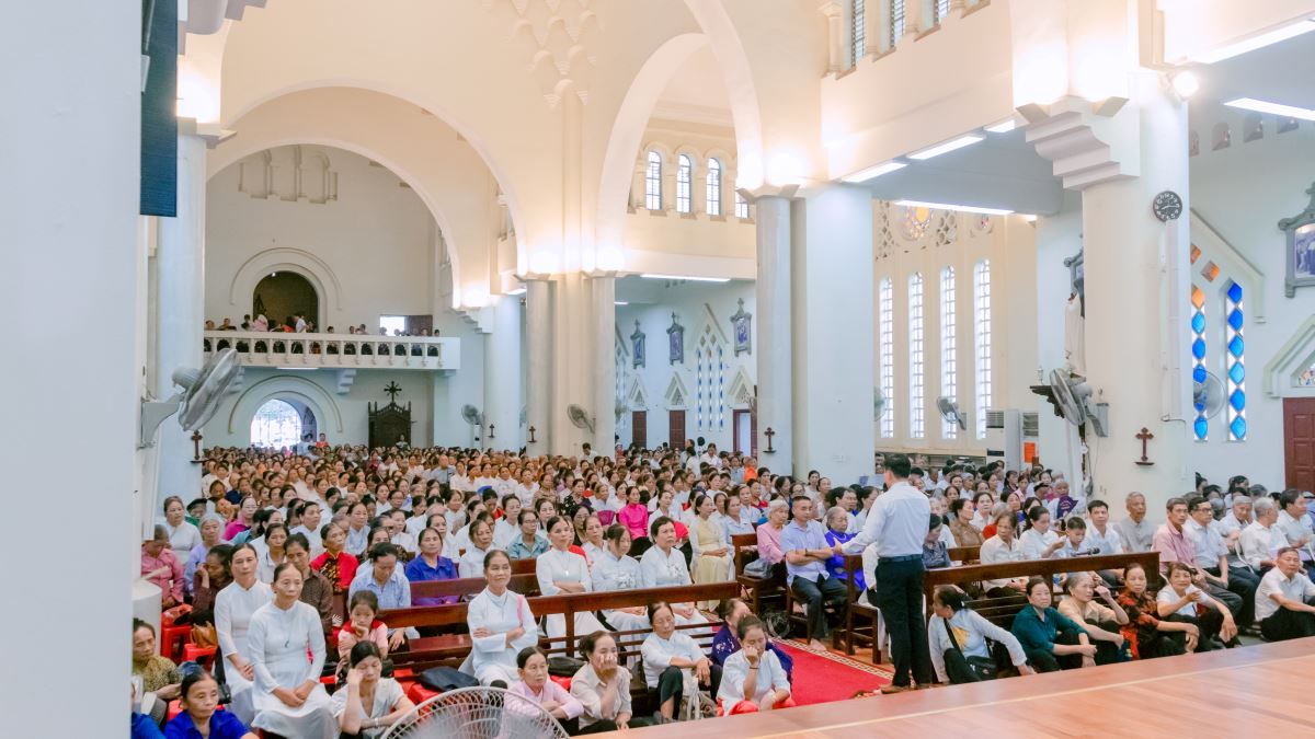 Ngay từ sáng sớm, khuôn viên Nhà thờ Chính tòa đã trở nên nhộn nhịp bởi từng đoàn xe nối tiếp nhau đổ về. Chính bầu khí ấy đã góp phần đánh động tâm hồn người tín hữu, thúc đẩy họ bước vào hành trình đức tin với lòng sốt mến và khát khao lãnh nhận ân sủng.