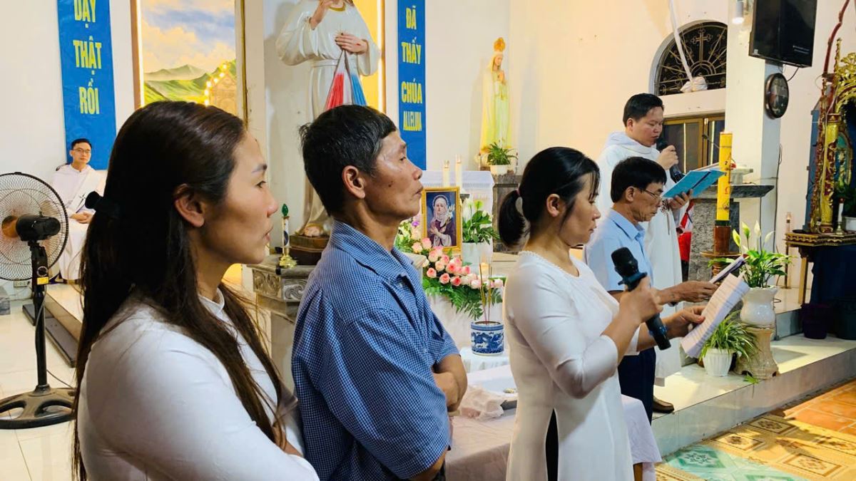 Thánh lễ do cha Gioan Baotixita Nguyễn Hữu Tài chủ tế, cùng đồng tế có cha quản xứ Đa Minh Nguyễn Văn Lưu, cha quê hương Phêrô Lã Công Viên; hiện diện trong Thánh lễ còn có thầy phó tế Dòng Đa Minh, đại diện Ban Phục vụ Huynh đoàn Đa Minh giáo phận, đại diện Liên huynh Hà – Tuyên – Hùng, đoàn trưởng Huynh đoàn Mỹ Bằng và đông đảo cộng đoàn dân Chúa.