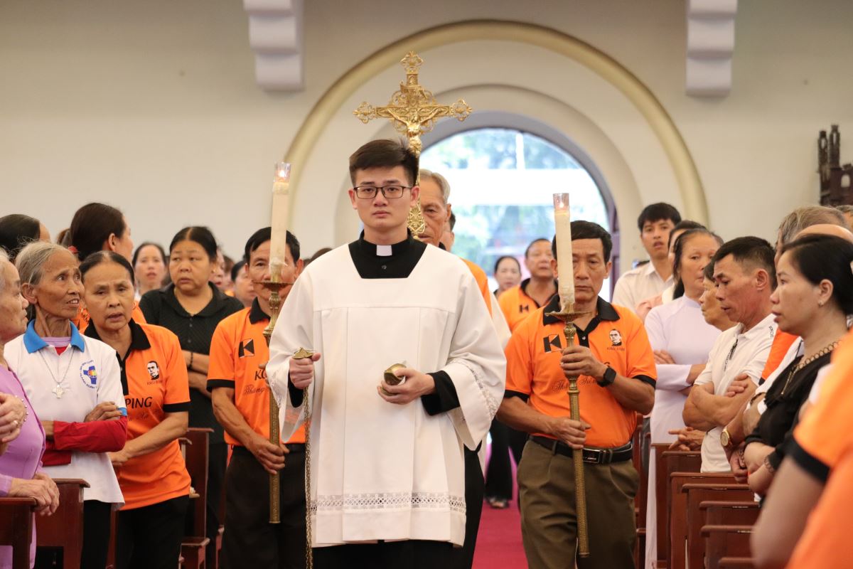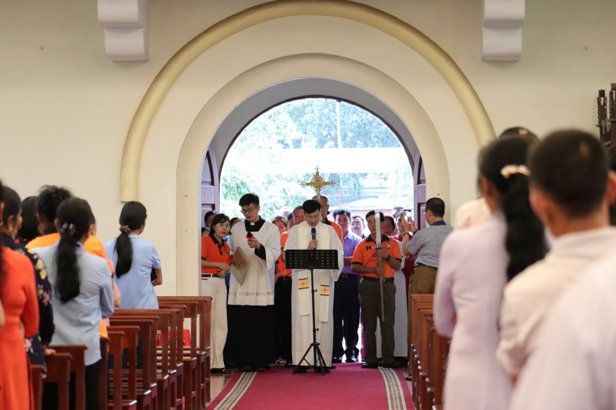 Vì trời mưa nên nghi thức hành hương hôm nay được cử hành lúc 08g00 tại cuối Nhà thờ, do cha Giuse Nguyễn Ngọc Ngoạn chủ sự.