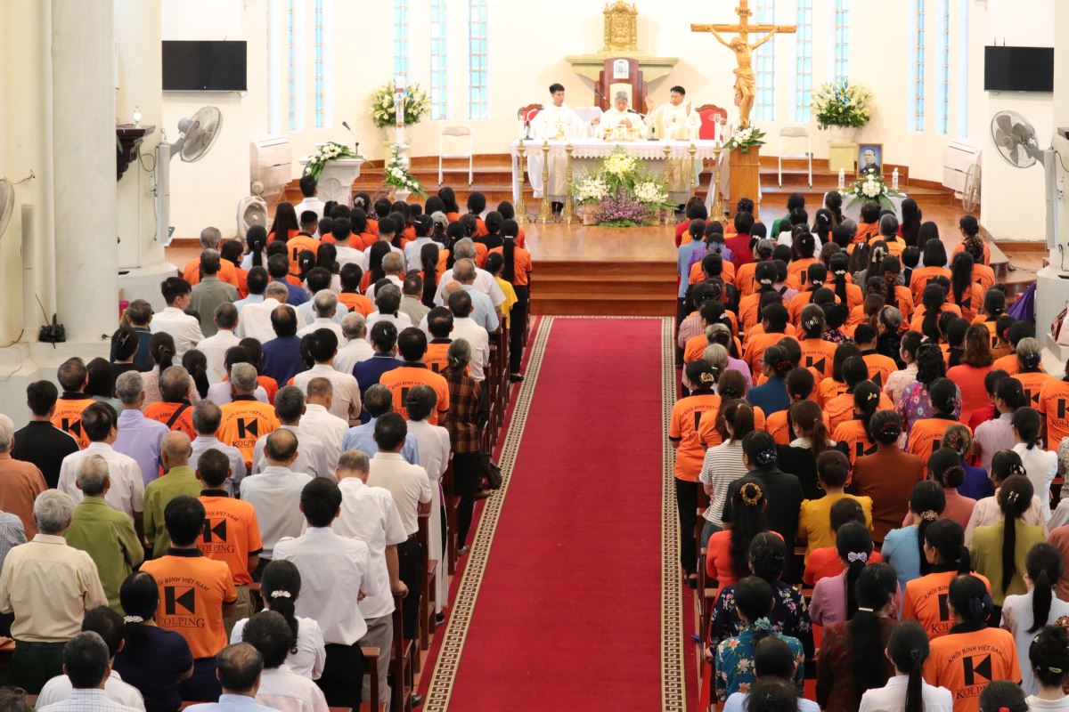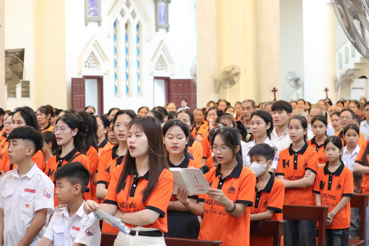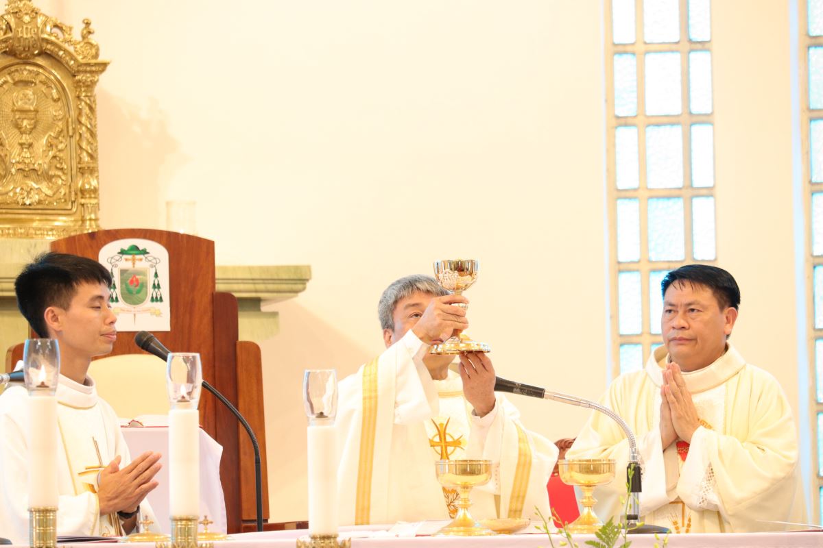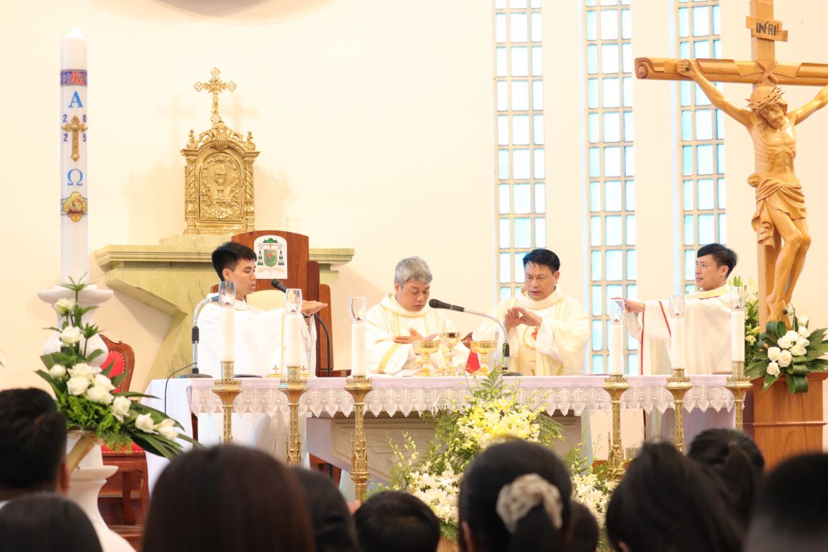 Thánh lễ đồng tế được cử hành lúc 10g30 do cha Giuse Nguyễn Đình Tuyến chủ sự. Trong ngày lễ kính Thánh Giuse thợ - Bổn mạng thứ II của Giáo phận Hưng Hóa, và cũng chính là bổn mạng của Cộng đoàn Khôi Bình, nhờ lời chuyển cầu của Thánh quan thầy, cha mời gọi cộng đoàn cùng sốt sắng hiệp dâng Thánh lễ, để xin Chúa thánh hóa bản thân, thánh hóa gia đình, thánh hóa Giáo hội qua Linh đạo Khôi Bình.