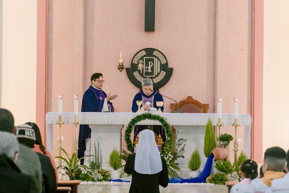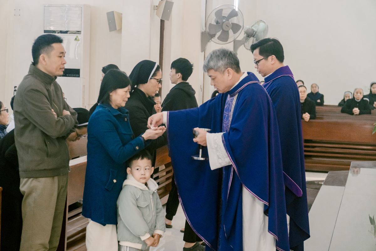 Thánh lễ do cha Giuse Nguyễn Đình Tuyến chủ tế, cùng đồng tế với cha Giuse Lê Thanh Nghị. Tham dự Thánh lễ, có thầy xứ Giuse Chu Văn Thái, quý chị em thuộc các khối đang phục vụ tại Nhà Mẹ Hội dòng, cùng quý chị em từ các cộng đoàn lân cận như Bách Lộc, Sơn Tây, các hội viên Hiệp hội Tín hữu Mến Thánh Giá, Thiếu Nhi Thánh Thể xứ đoàn Đa Minh Savio và cộng đoàn giáo xứ Chính Tòa.