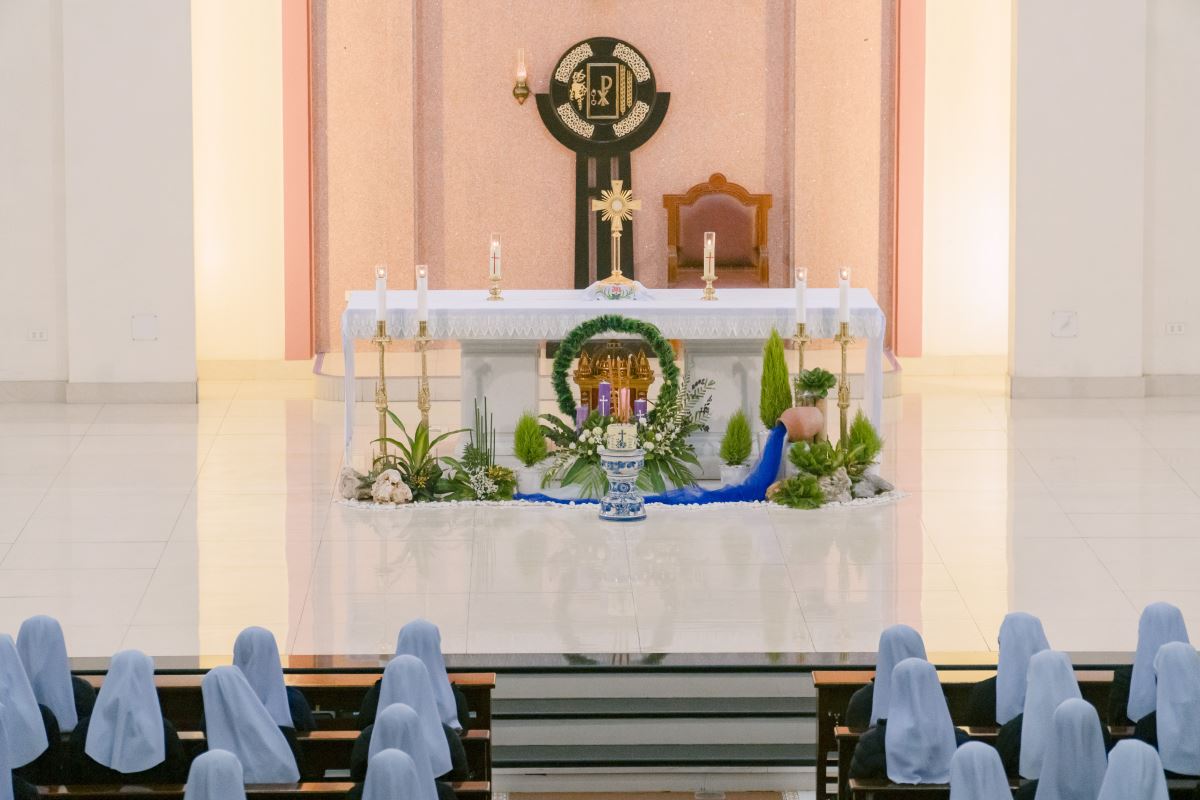 Mở đầu Thánh lễ, cha chủ tế mời gọi cộng đoàn bước vào Năm Phụng vụ mới trong tâm tình Mùa Vọng – mùa của chờ đợi và hy vọng. Trong bầu khí linh thiêng ấy, mọi người cùng hướng lòng về mầu nhiệm Chúa Giáng Sinh đang gần kề, đồng thời chuẩn bị cho ngày Ngài sẽ trở lại trong vinh quang. Cha tha thiết nhắn nhủ mỗi người hãy tỉnh thức và cầu nguyện, để tâm hồn luôn rộng mở và sẵn sàng đón Chúa đến. Trong tâm tình ngày chầu lượt, cha cũng mời gọi cộng đoàn hiệp ý dâng lời tạ ơn và cầu nguyện cho Hội dòng, xin Chúa tuôn đổ muôn phúc lành trên các cộng đoàn, và cách riêng nhớ đến các chị em đã được Chúa gọi về.