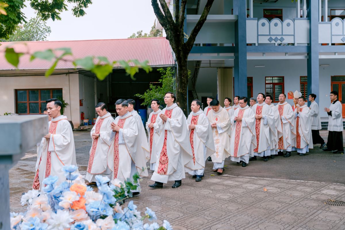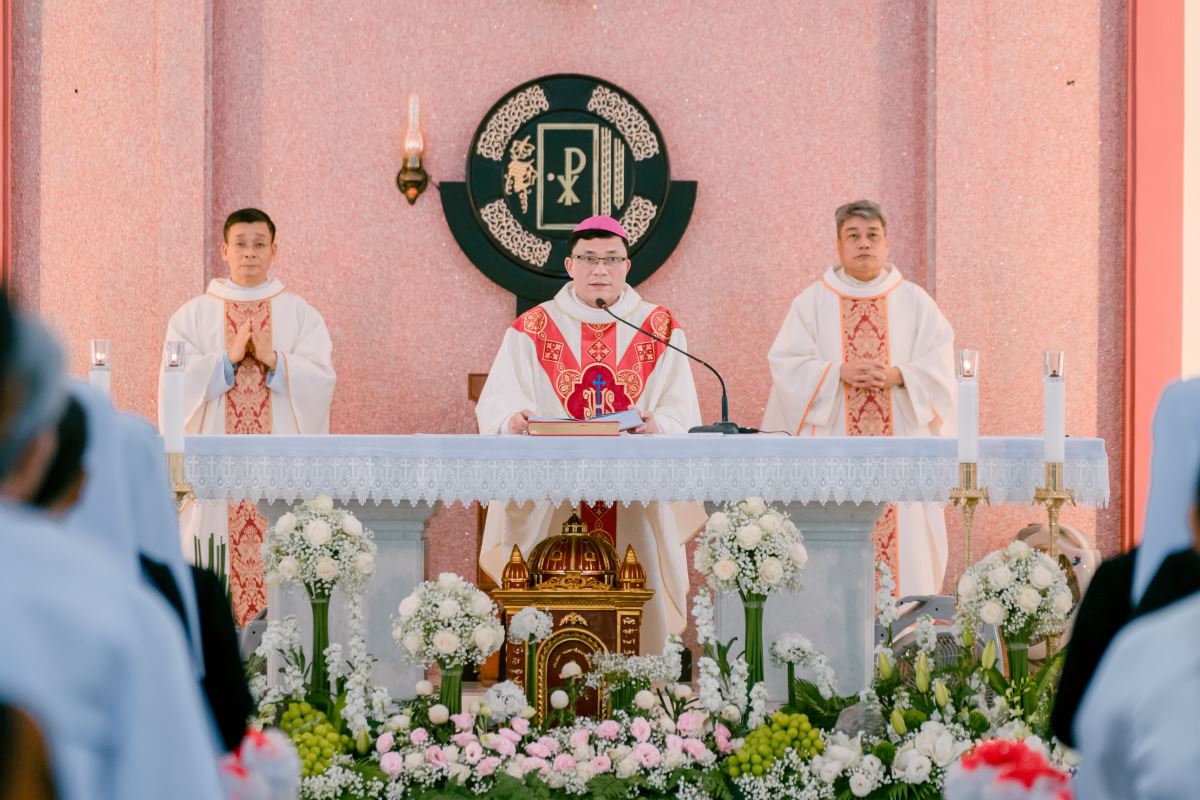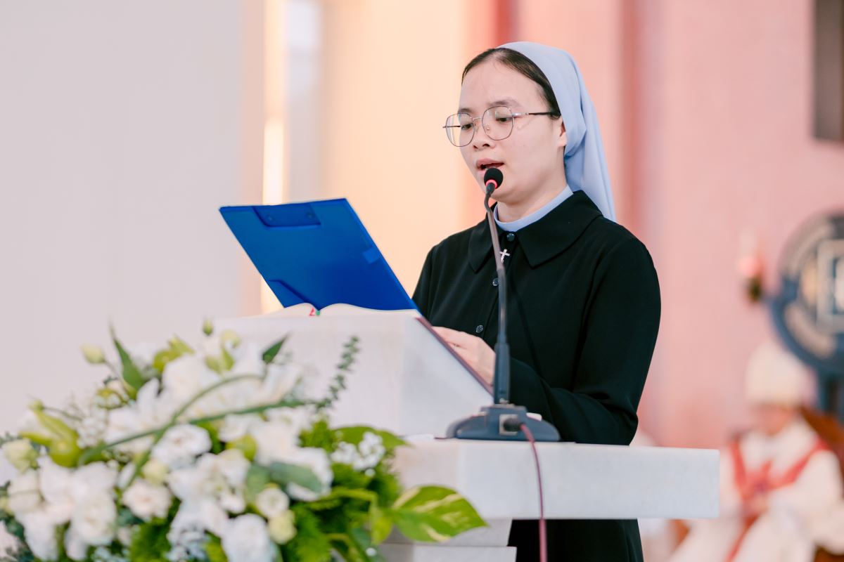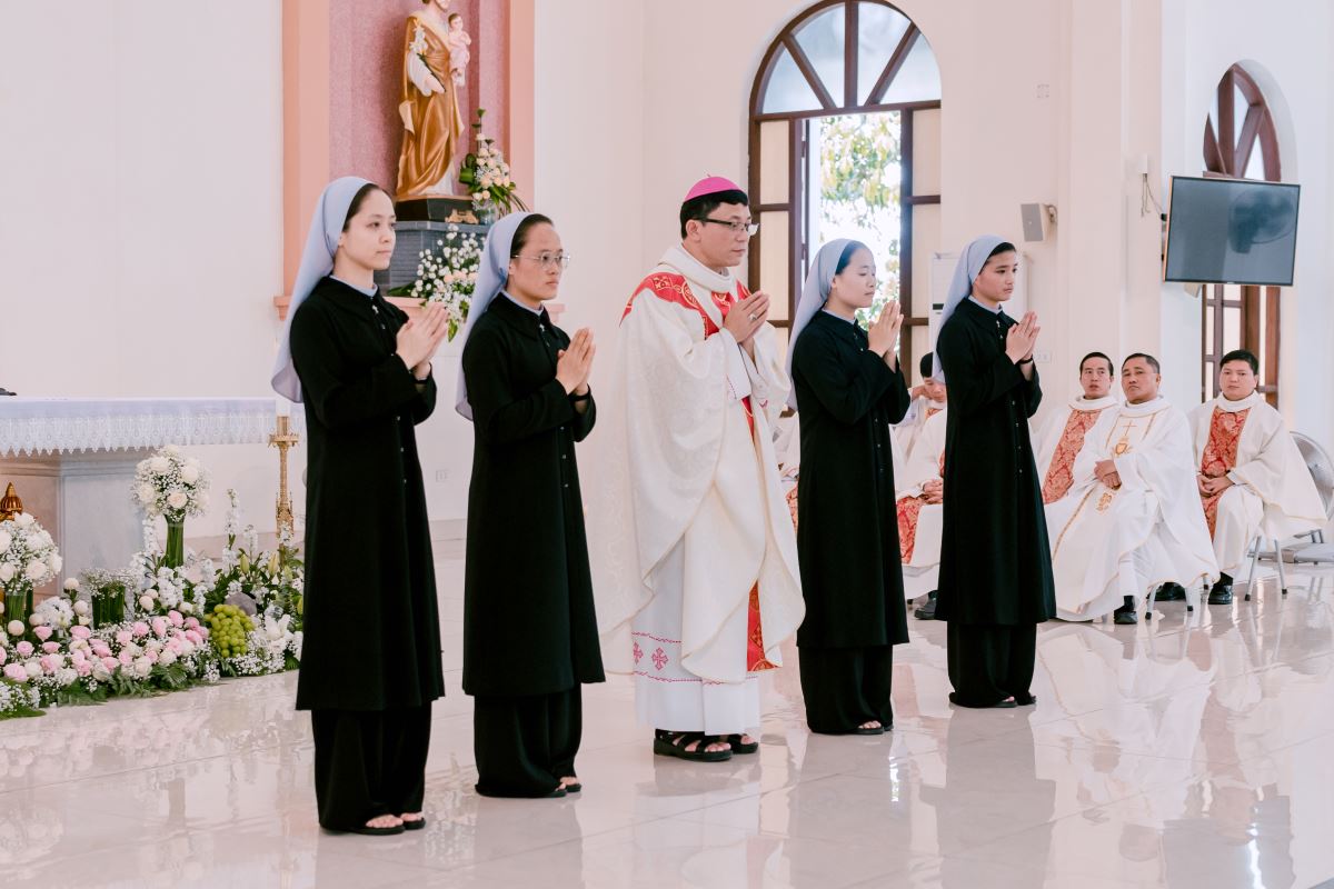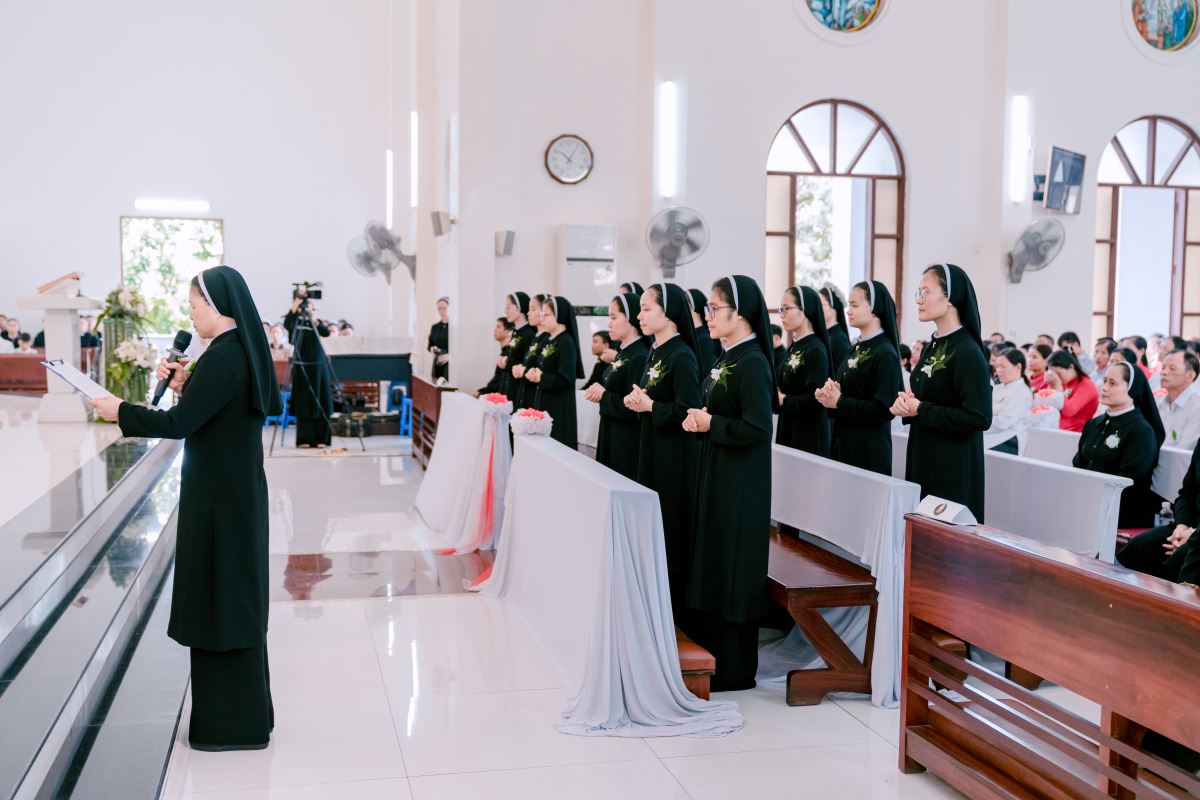 Mở đầu Thánh lễ, Đức cha Phaolô mời gọi cộng đoàn dâng lời tạ ơn Thiên Chúa đã thương tuyển chọn và hướng dẫn các chị em trong hành trình đời thánh hiến. Hôm nay, sau nhiều năm tu luyện, các chị em được diễm phúc long trọng tuyên khấn ba lời khuyên Phúc Âm. Đây là niềm vui của các chị em, của gia đình, của Hội Dòng và cũng là niềm vui chung của toàn thể giáo phận. Trong tâm tình hiệp thông, Đức cha cùng cộng đoàn dâng lời cảm tạ và cầu xin Thiên Chúa ban muôn ơn lành, để các chị em mãi trung thành với ơn gọi và trở nên chứng nhân sống động của Ngài giữa lòng thế giới.
