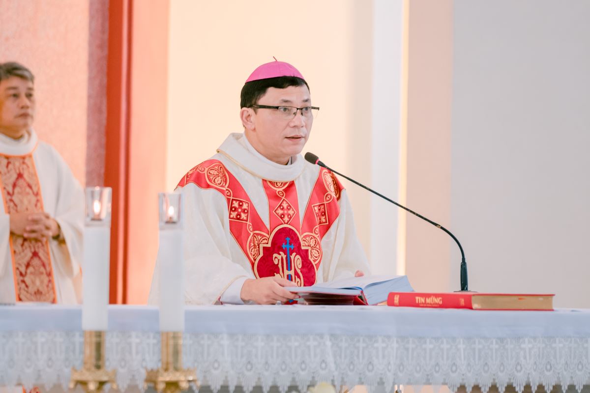 Giảng trong Thánh lễ, khởi đi từ Hiến Chương Nước Trời (Mt 5), Đức cha Phaolô đã nhấn mạnh đến ba lời khuyên Phúc Âm Khó Nghèo, Khiết Tịnh Và Vâng Phục – đây chính là con đường nên giống Đức Giêsu Chịu Đóng Đinh. Hạnh phúc đích thực không hệ tại nơi tiền bạc, quyền lực hay lạc thú, nhưng chỉ có nơi Thiên Chúa. Gương sống của Thánh Augustinô và nhất là chính Đức Giêsu cho thấy: Ngài vốn giàu sang nhưng đã tự nguyện trở nên nghèo khó, hiền lành và vâng phục cho đến chết trên thập giá. Ngài cũng là Đấng giàu lòng thương xót, đem bình an và ơn cứu độ cho nhân loại. Người tu sĩ, khi sống các lời khấn, được mời gọi từ bỏ ý riêng, thoát khỏi tham lam và ích kỷ, sống bác ái, hiệp nhất, và dấn thân phục vụ tha nhân vì tình yêu Chúa. Đức cha tha thiết mời gọi cộng đoàn cầu nguyện cho các khấn sinh, để các chị em kiên vững trong ơn gọi, trung thành với lời khấn, và trở nên chứng nhân tình yêu của Thiên Chúa giữa lòng đời.