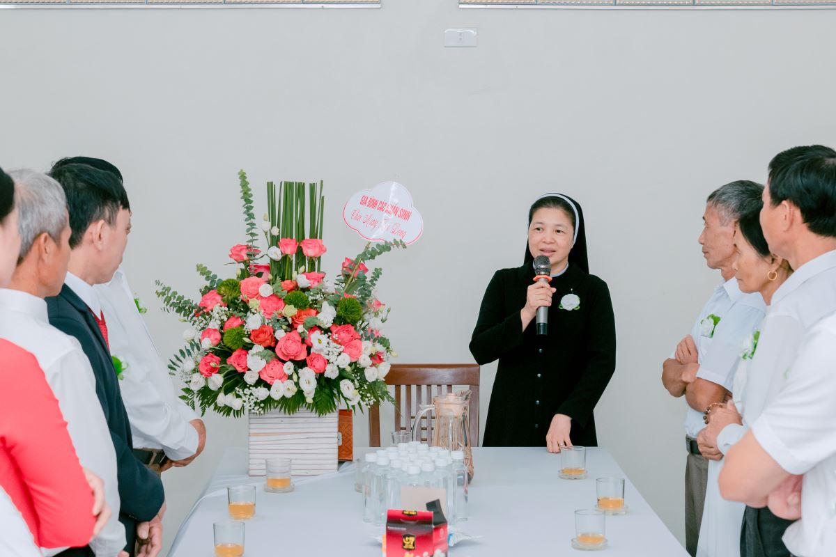 Trước khi khép lại Thánh Lễ, Chị Tổng Phụ Trách đã đại diện Hội dòng dâng lời tri ân sâu sắc đến Quý Đức Cha đã quảng đại dày công vun đắp cho Hội dòng trong suốt hành trình trưởng thành và thăng tiến. Đồng thời, Chị cũng bày tỏ lòng biết ơn chân thành tới quý Cha trong và ngoài Giáo phận, quý ông bà cố, quý nam nữ tu sĩ và toàn thể cộng đoàn đã hiện diện, cùng hiệp dâng Thánh lễ, chung chia niềm vui và nâng đỡ gia đình Hội dòng trong ngày hồng phúc này.