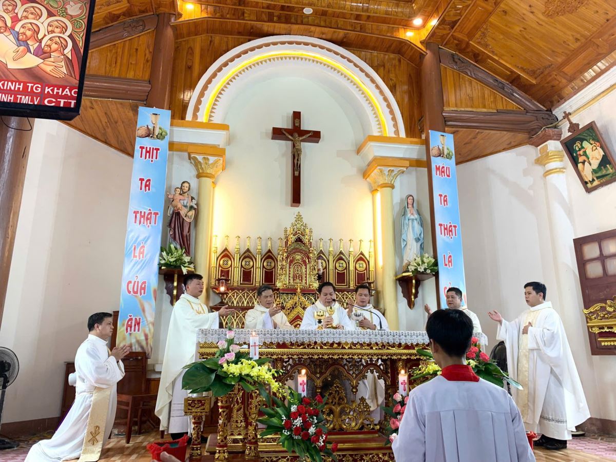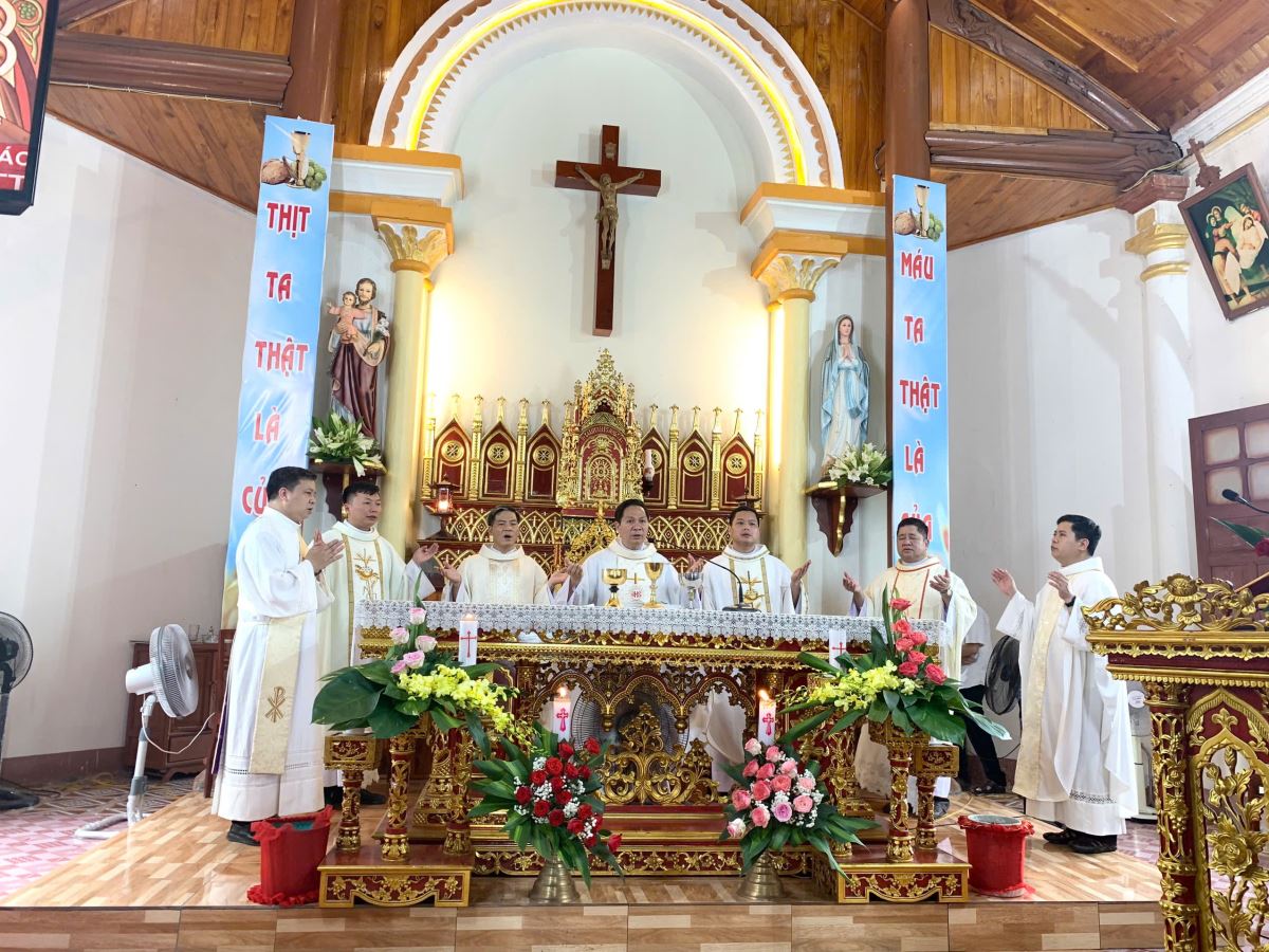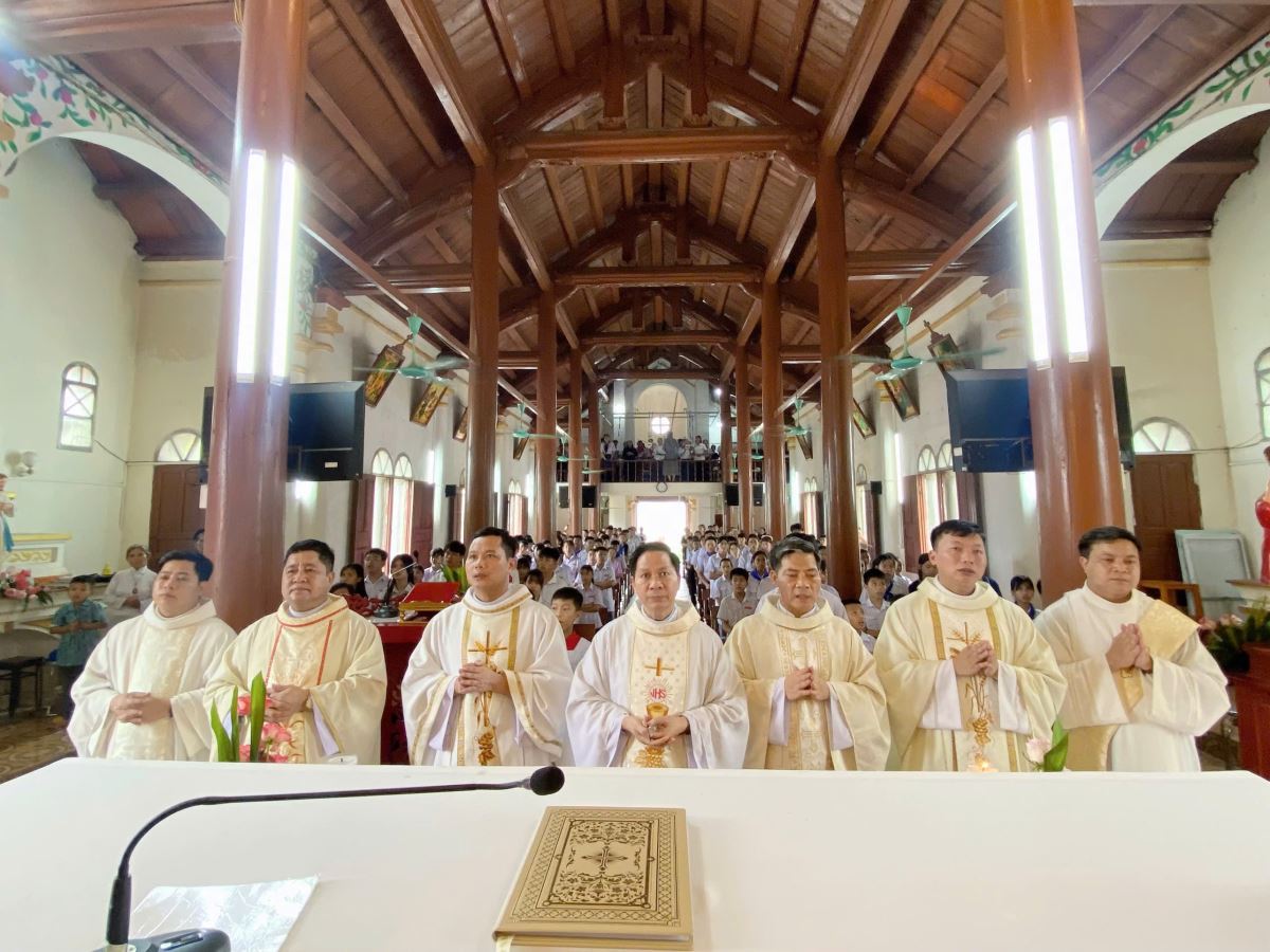 Cao điểm của buổi gặp gỡ là Thánh lễ đồng tế do cha quản hạt Giuse Nguyễn Viết Hiệp chủ sự. Mở đầu Thánh lễ, cha quản hạt đã chia sẻ về lý do giáo phận chọn ngày lễ Sinh nhật Thánh Gioan Tẩy Giả làm ngày lễ bổn mạng Tu sinh, bởi Thánh Gioan là người được Thiên Chúa kêu gọi và thánh hiến từ trong lòng mẹ, để trở nên tiếng hô trong sa mạc, dọn đường cho Chúa.