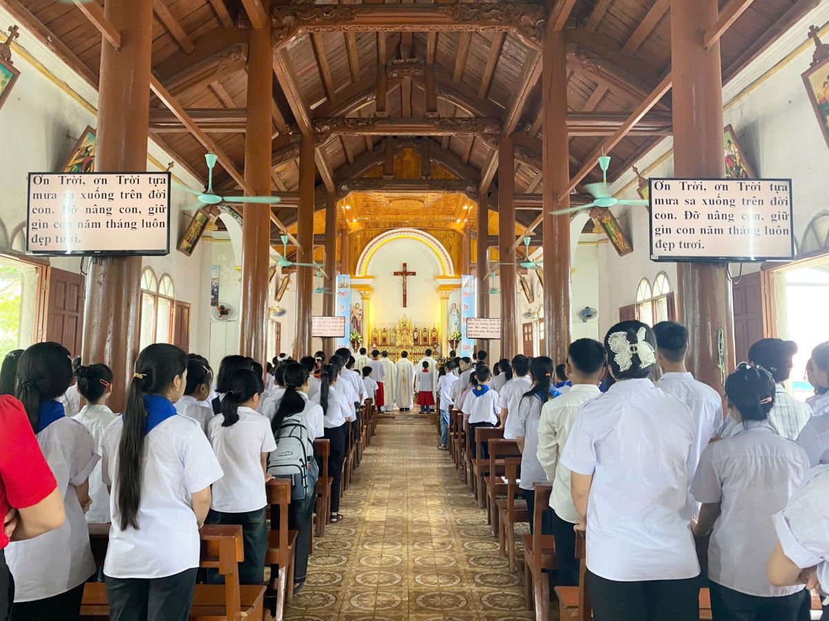 Sau Thánh lễ, các em cùng tham dự bữa cơm hiệp thông trong tinh thần chia sẻ và kết nối. Đây cũng là cơ hội để các Tu sinh thuộc các giáo xứ gặp gỡ, làm quen và khích lệ nhau trong hành trình tìm hiểu và theo đuổi ơn gọi thánh hiến.