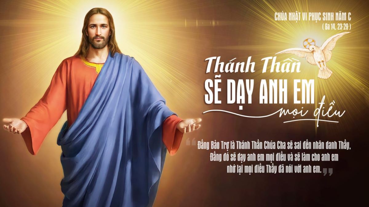 Kính thưa cộng đoàn Phụng vụ! Trong đoạn Tin Mừng hôm nay, Đức Giê-su mạc khải cho chúng ta biết về Chúa Thánh Thần, mà Ngài được gọi là ‘Đấng Bảo Trợ’ (Ga 14, 16. 26), và là ‘Thần Khí sự thật’ (Ga 14, 17). Chúa Thánh Thần được Chúa Cha sai đến nhân danh Đức Giê-su Ki-tô, ngõ hầu “dạy các con mọi điều và và sẽ nhắc nhở cho các con tất cả những gì Thầy đã nói với các con” (Ga 14, 26). Thật vậy, Chúa Thánh Thần được sai đến để bảo trợ, nâng đỡ, hướng dẫn, dạy dỗ, nhắc nhở chúng ta tất cả những gì Đức Giê-su đã nói và làm; chứ chẳng phải Ngài tự đến, dạy và thực hiện mọi điều khác biệt với giáo huấn của Đức Giê-su Ki-tô.