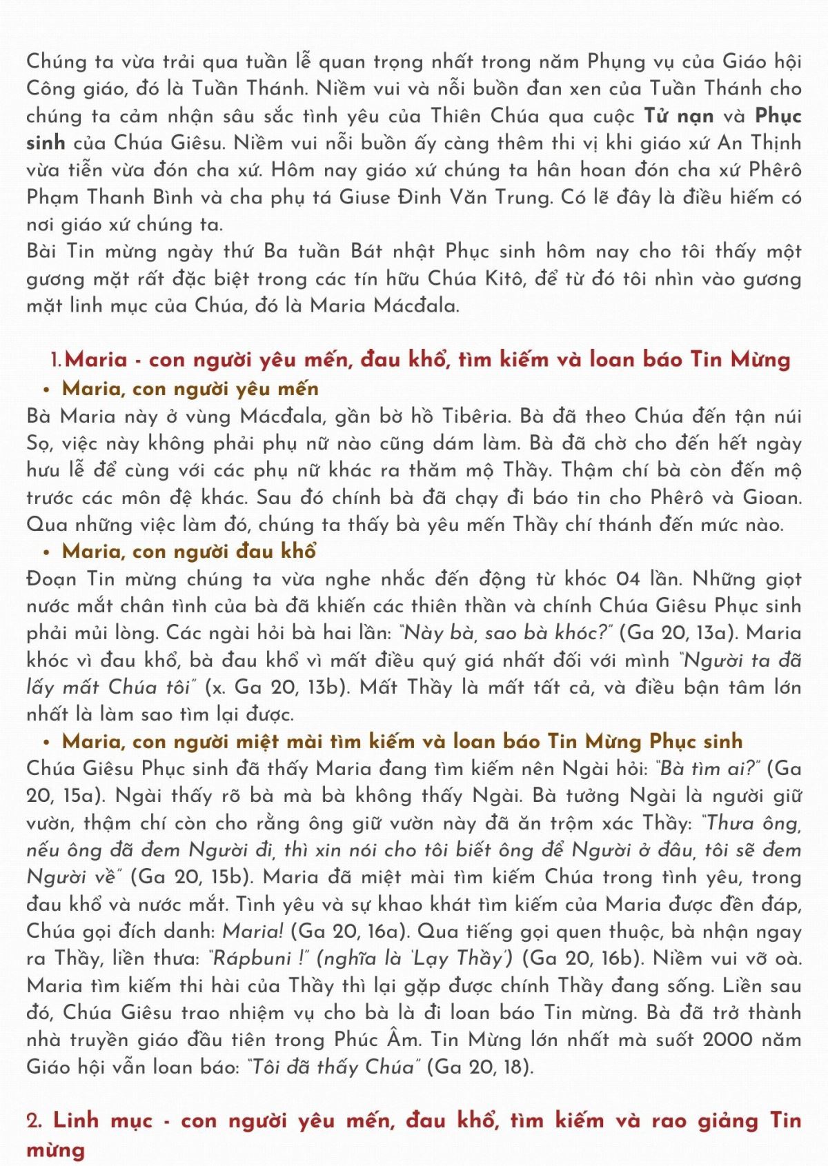 Đọc bài Tin mừng tại đây: Ga 20, 11-18