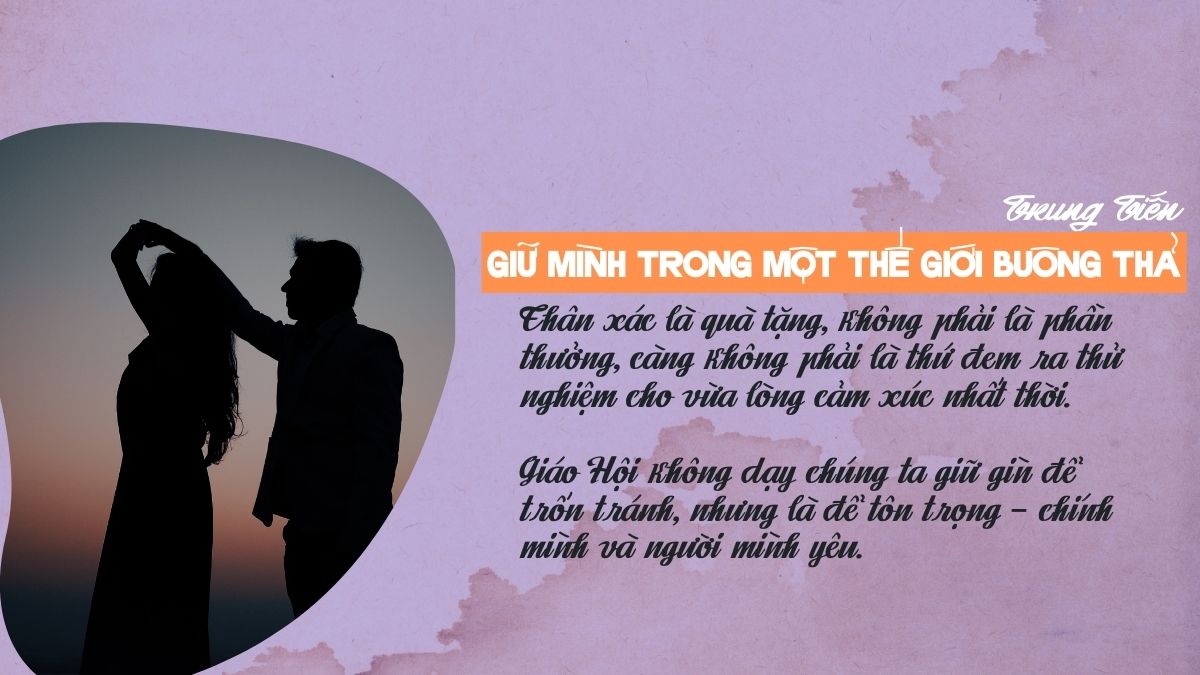 Nhưng bạn ơi, mình tin là có những giá trị không bao giờ lỗi thời, dù thế giới có xoay nhanh đến đâu. Và giữ mình không phải là vì bạn không có nhu cầu, không rung động, không yêu ai hết, mà là vì bạn biết tình yêu không chỉ là chuyện xác thịt, mà còn là chuyện linh hồn, là việc nâng đỡ nhau nên tốt hơn, là cùng nhau bước vào một hành trình mà thân xác được trao chỉ khi cả hai sẵn sàng bước vào giao ước của đời sống hôn nhân. Thân xác là quà tặng, không phải là phần thưởng, càng không phải là thứ đem ra thử nghiệm cho vừa lòng cảm xúc nhất thời.