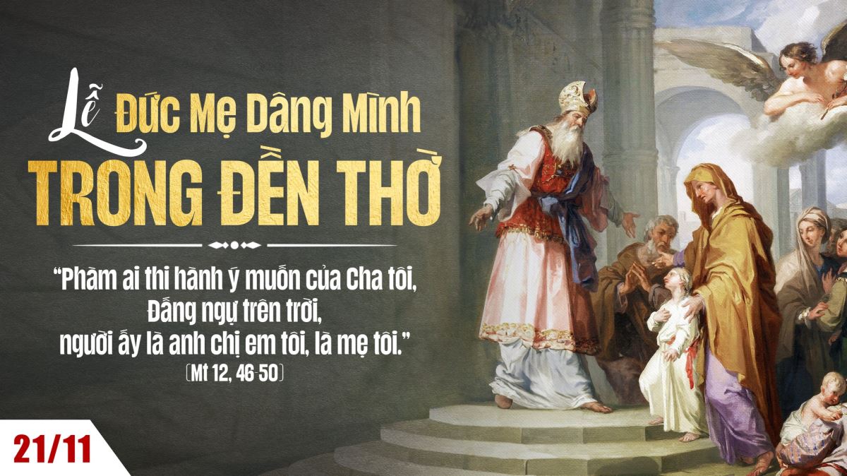 Nhưng trong Nước Thiên Chúa, điều quan trọng là lòng tin và sự vâng phục. Như vậy, lễ Đức Mẹ dâng mình trong Đền Thờ không chỉ là một biến cố của đời Mẹ, mà còn là lời mời gọi sâu xa đối với tất cả chúng ta: hãy bước vào hành trình thánh hiến, hãy dâng mình cho Thiên Chúa bằng chính đời sống mỗi ngày, bằng sự vâng phục Lời Chúa, bằng việc thực thi thánh ý Người giữa đời thường.