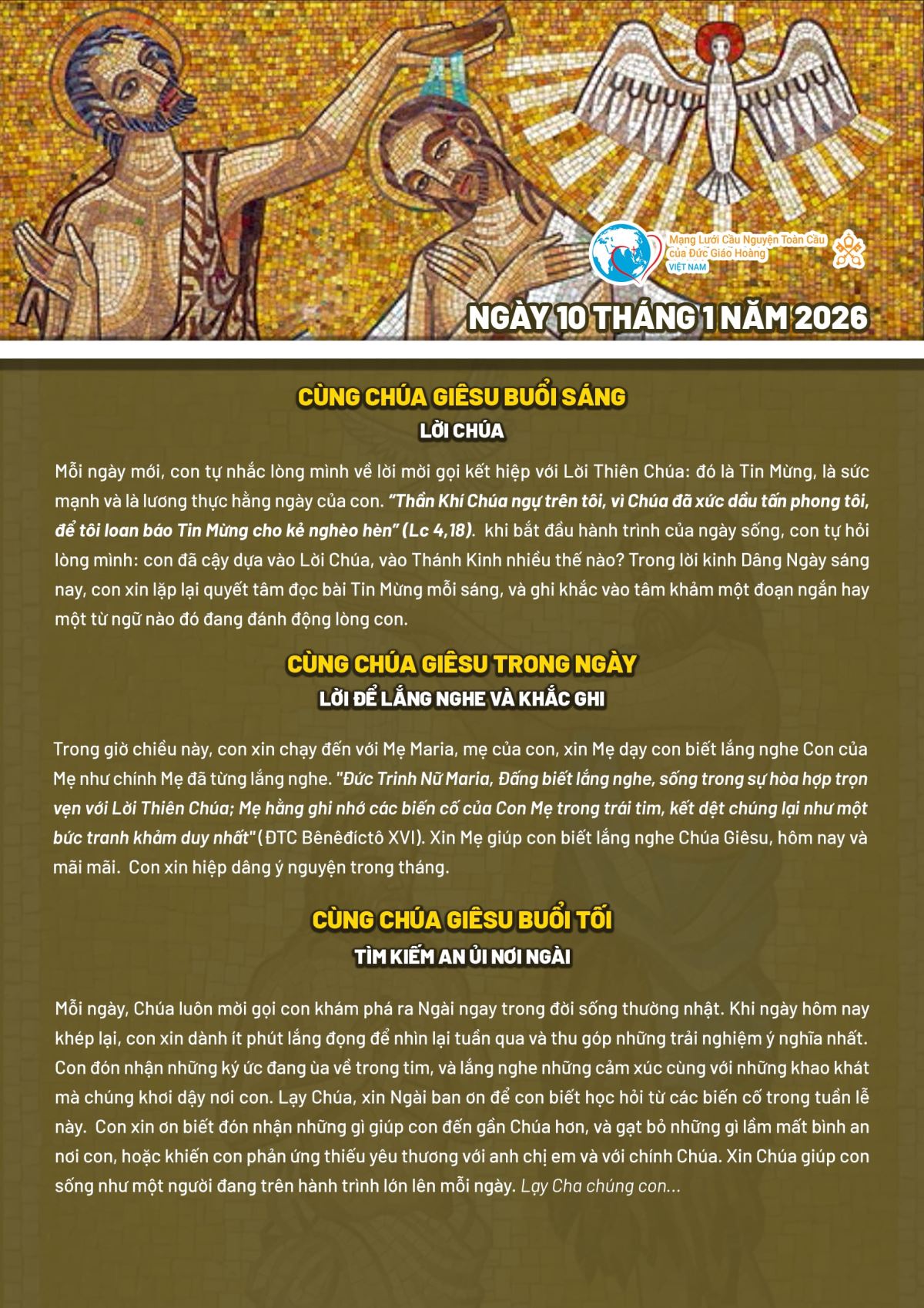 Tông Đồ Cầu Nguyện ngày 10/01/2026