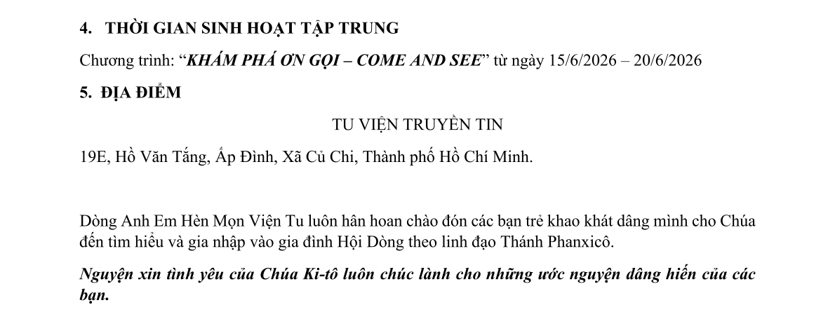 Thông báo Tuyển sinh - Nhận định Ơn gọi | Dòng Tông Đồ Cầu Nguyện Ơn Gọi