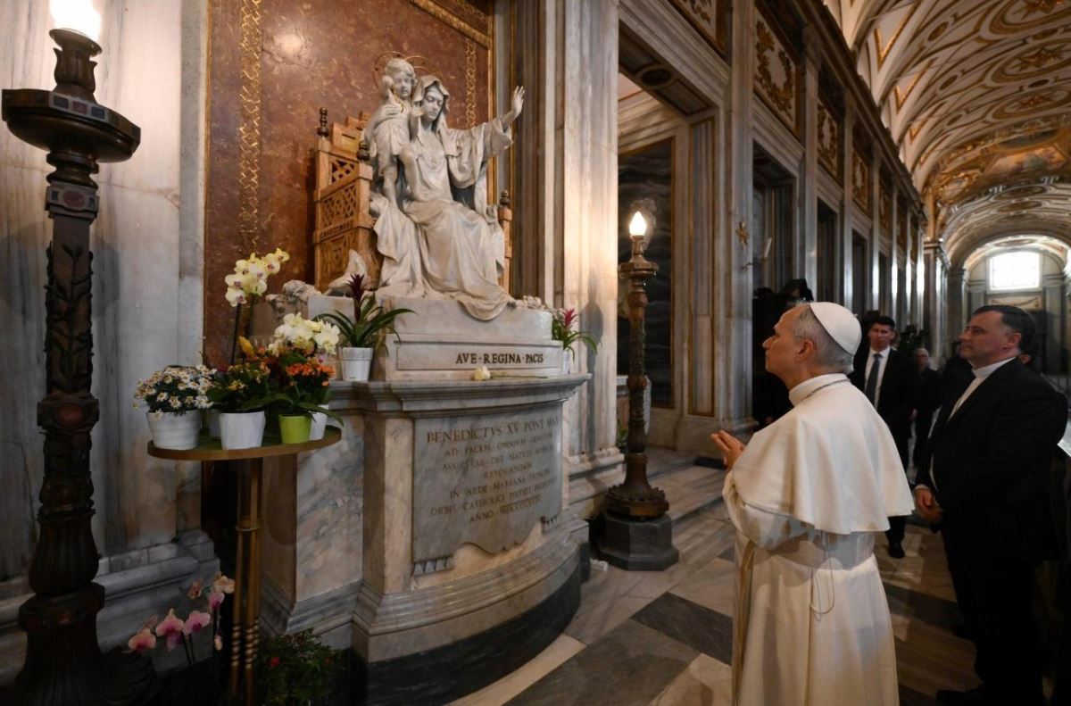 Đức Thánh Cha Lêô XIV cầu nguyện tại Đền thờ Đức Bà Cả (@Vatican Media)
