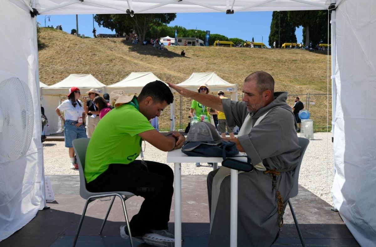 Các bạn trẻ bước đi giữa những hàng người ngay ngắn, ngồi dưới bóng râm và lắng nghe nhau. Một số mỉm cười, số khác cúi xuống. Đó là khoảnh khắc xưng tội. Khoảnh khắc trái tim được soi sáng, lời nói trở thành chân lý, và tâm hồn được hít thở. Tại đây, trong không gian tràn ngập ân sủng này, người ta có thể trực tiếp trải nghiệm mầu nhiệm của cuộc gặp gỡ giữa sự yếu đuối của con người và lòng thương xót của Chúa.