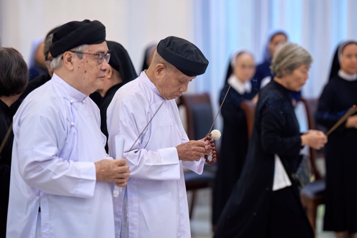 Kết thúc buổi cầu nguyện, các tham dự viên lãnh nhận phép lành từ Đức Giám mục Giuse và cùng nhau thắp nhang viếng di ảnh Đức Giáo hoàng Phanxicô.