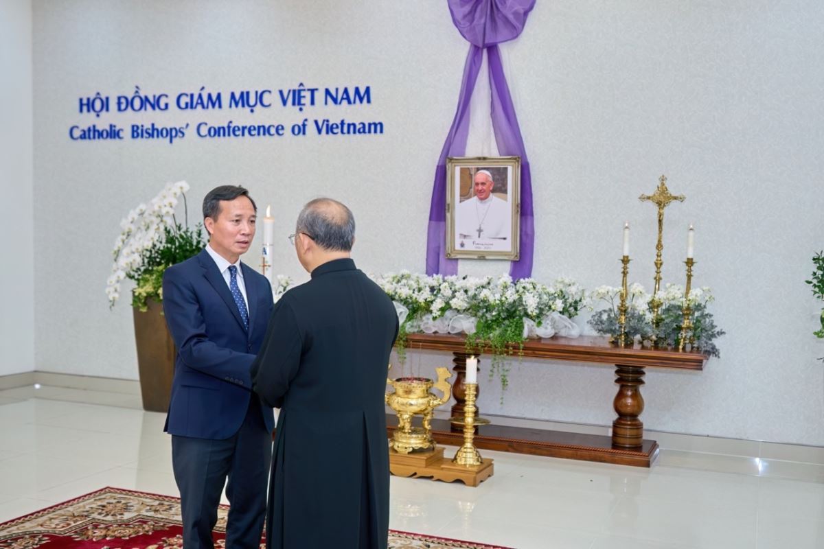 Đại diện Bộ Dân tộc và Tôn giáo của Chính phủ Việt Nam, ông Vũ Hoài Bắc (Trưởng Ban Tôn giáo Chính phủ) đã không quản ngại đường xa, đáp máy bay từ Thủ đô Hà Nội vào Thành phố Hồ Chí Minh trong thời điểm đất nước có nhiều chuỗi sự kiện kỷ niệm lớn diễn ra. Đón tiếp ông là Linh mục Phaolô Vũ Đỗ Anh Khoa, Đại diện Văn phòng Hội đồng Giám mục Việt Nam. Ông đã thắp nhang, chia buồn đến cộng đồng Công giáo tại Việt Nam trước sự ra đi của vị cha chung của Giáo hội hoàn vũ. Ông cũng cho biết thêm trong triều đại của Đức Giáo hoàng Phanxicô, mối quan hệ ngoại giao giữa 2 bên đã có nhiều chuyển biến tích cực và nồng ấm hơn bao giờ hết. Đáp từ, Linh mục Phaolô Vũ Đỗ Anh Khoa thay mặt Hội đồng Giám mục Việt Nam đã bày tỏ sự trân trọng và cảm ơn trước sự quan tâm của chính quyền Việt Nam.