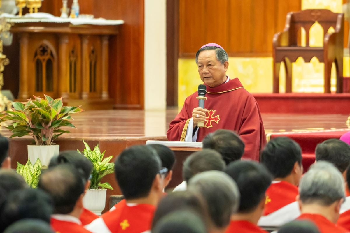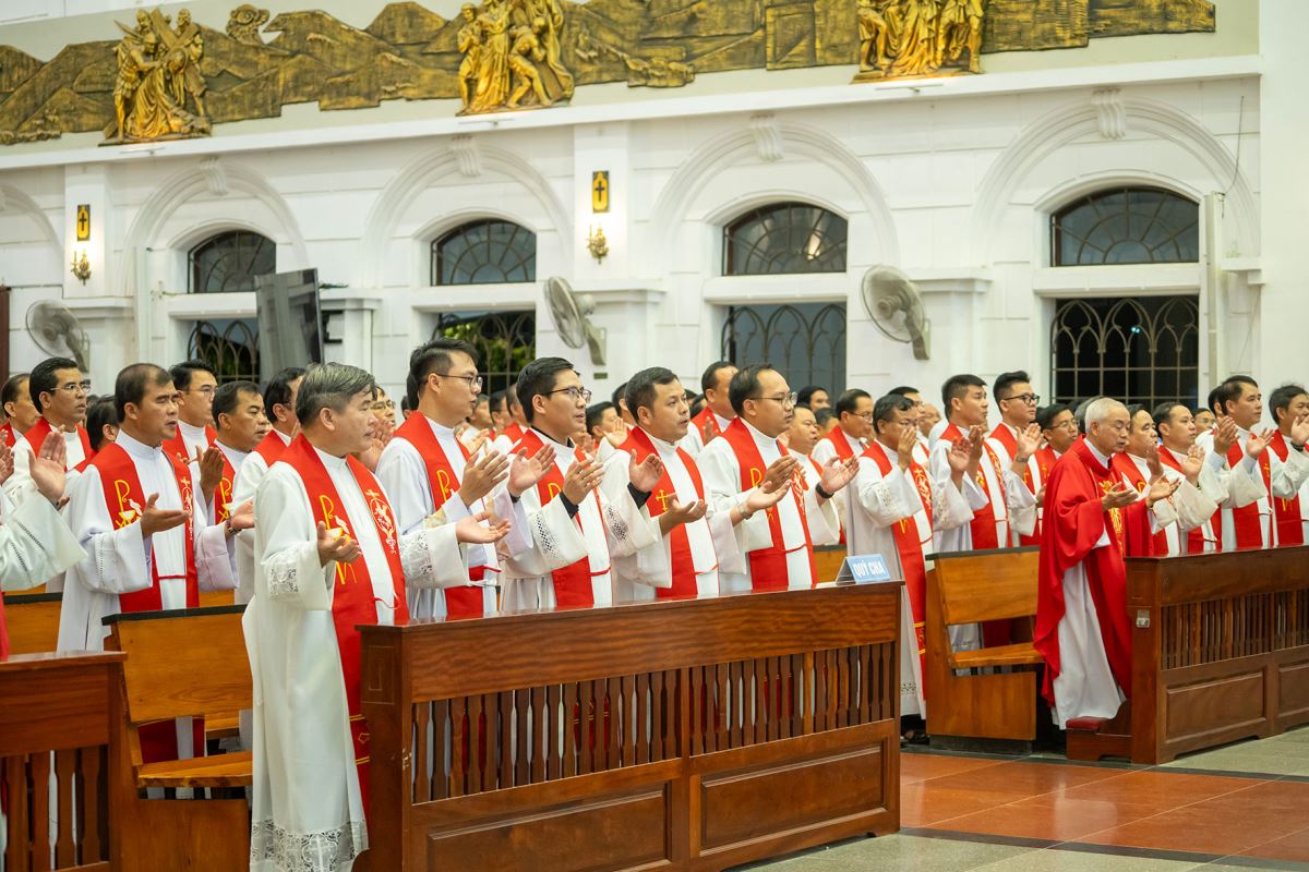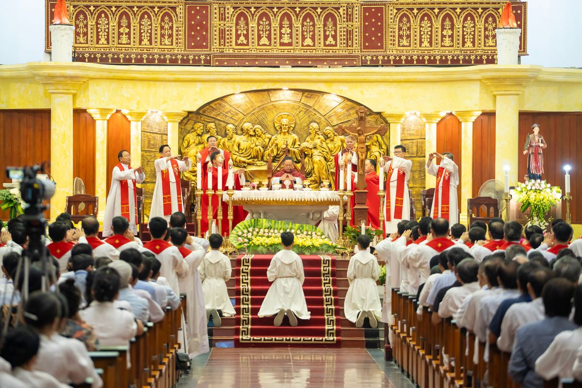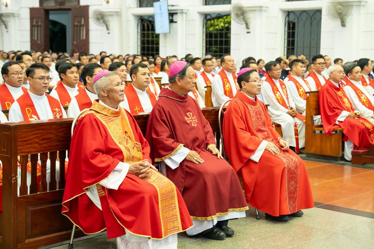 Cao điểm của buổi khai mạc là Thánh lễ trọng thể kính Chúa Thánh Thần do Đức cha Chủ tịch UBGD Giuse Trần Văn Toản chủ sự.
