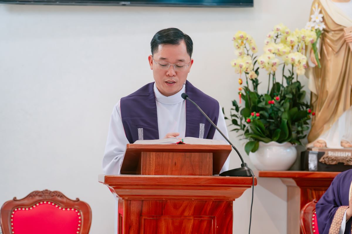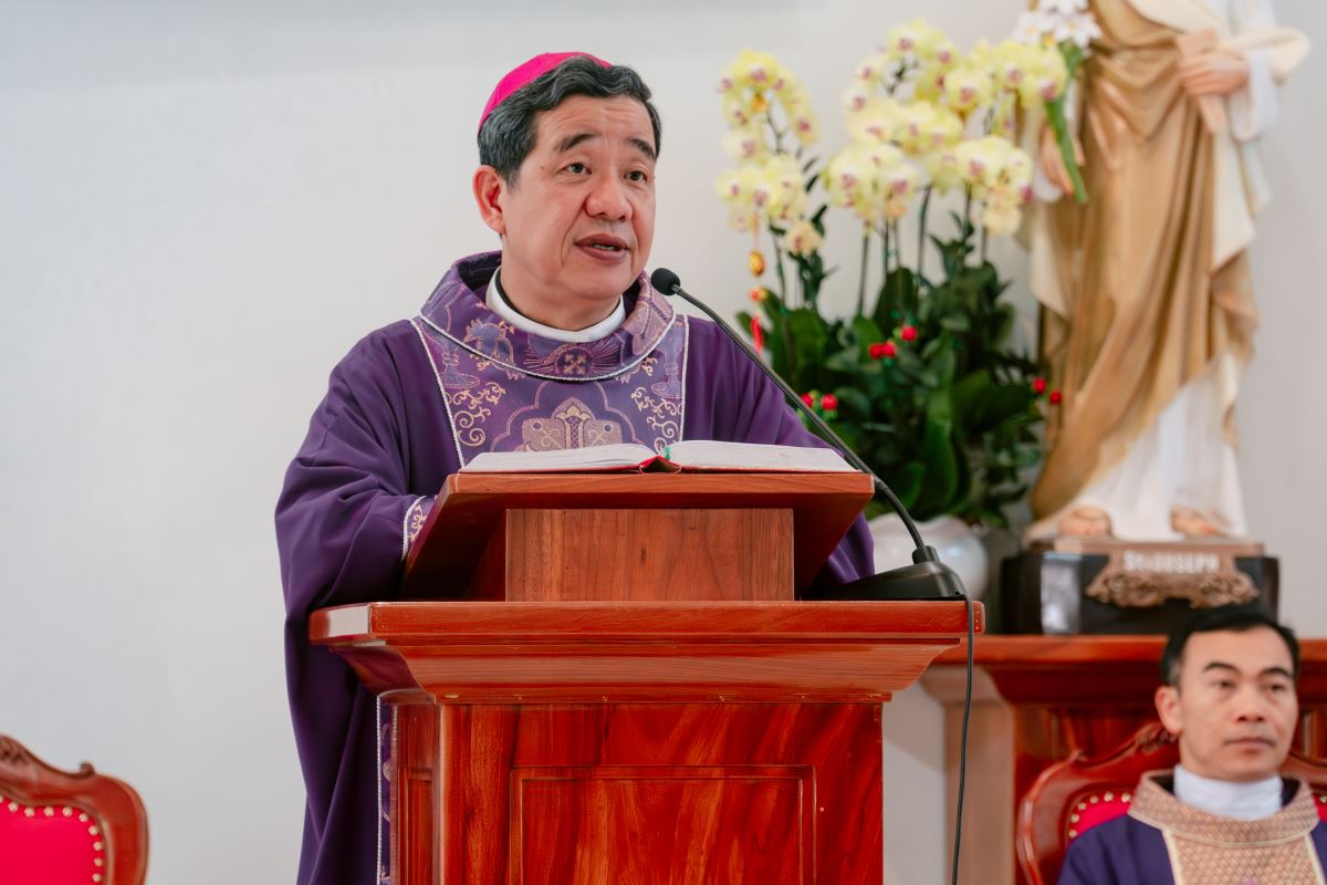 Trong bài giảng, Đức cha nhấn mạnh điều răn quan trọng nhất là mến Chúa trên hết mọi sự và yêu thương tha nhân như chính mình. Qua cuộc gặp gỡ giữa Chúa Giê-su và người luật sĩ, ngài cho thấy hiểu biết về luật Chúa là điều tốt, nhưng quan trọng hơn là sống và thực hành tình yêu ấy bằng những hành động cụ thể trong đời sống. Người Kitô hữu không chỉ quan tâm đến đời sống vật chất đời này mà còn phải lo cho phần rỗi đời sau, nhất là qua việc cầu nguyện và dâng lễ cho cha mẹ, người thân. Đặc biệt, đối với những người dấn thân loan báo Tin Mừng, cần có lòng khao khát ơn cứu độ cho tha nhân; bởi khi đem Chúa đến cho người khác, chính họ cũng được củng cố phần rỗi của mình. Kết thúc bài giảng, Đức cha cầu xin Chúa ban ơn để các tác viên Tin Mừng luôn yêu mến Chúa, nhiệt thành đem Chúa đến cho mọi người.