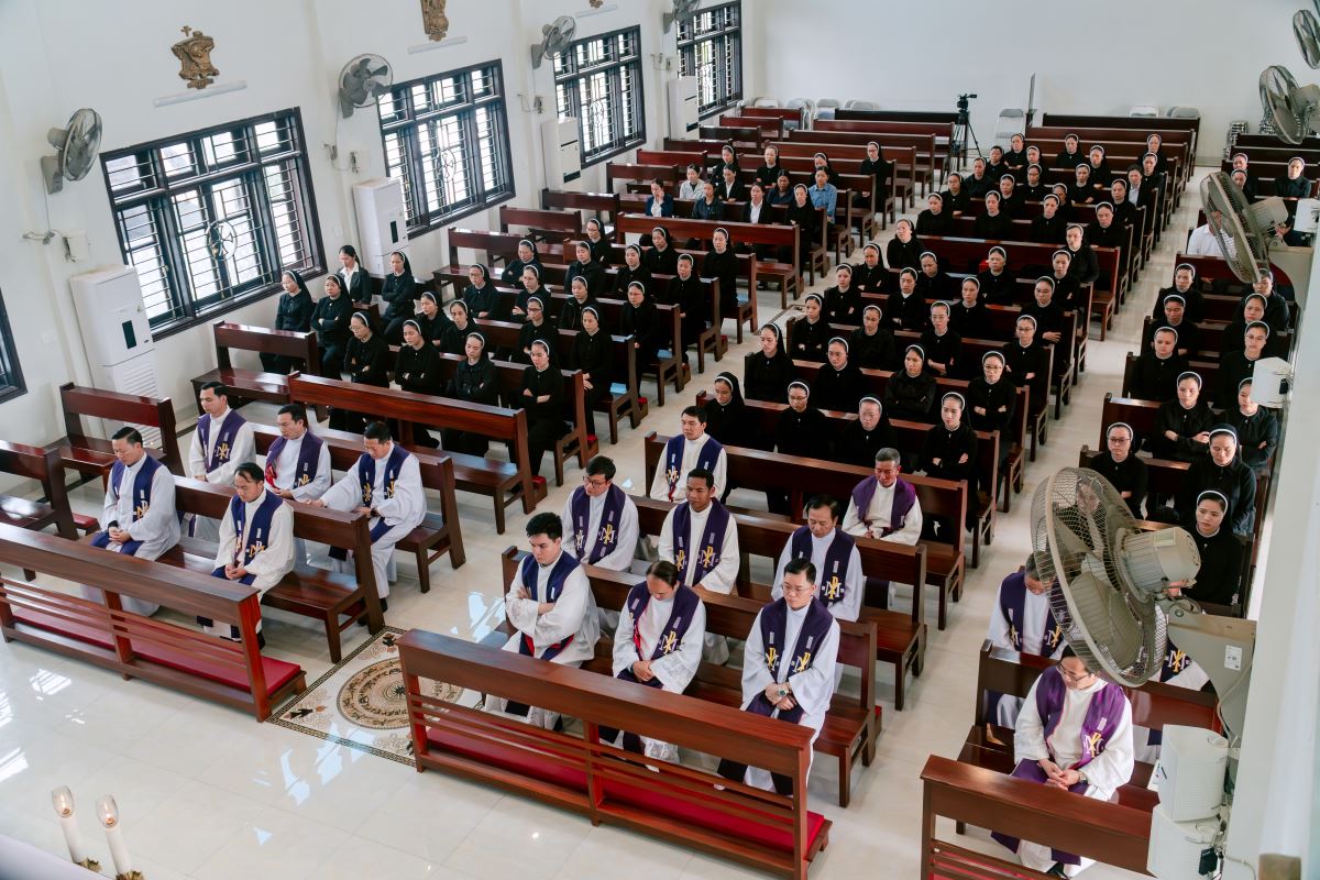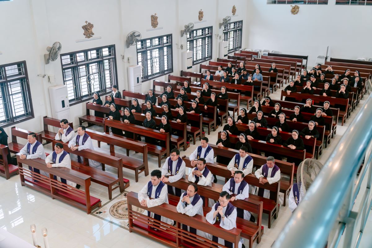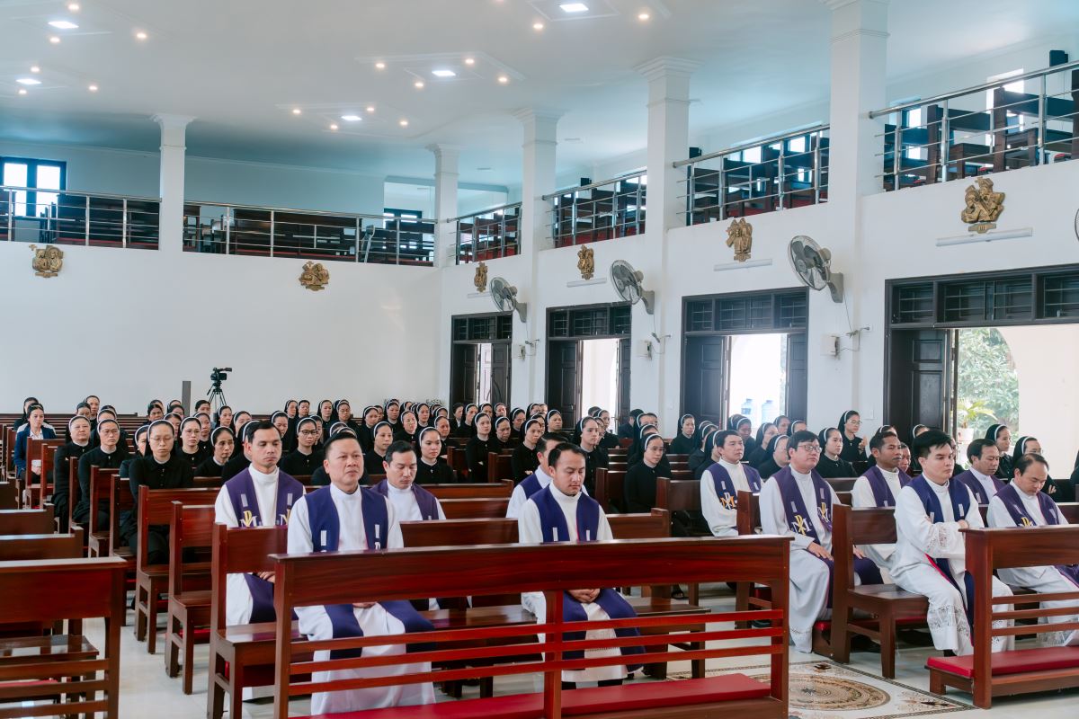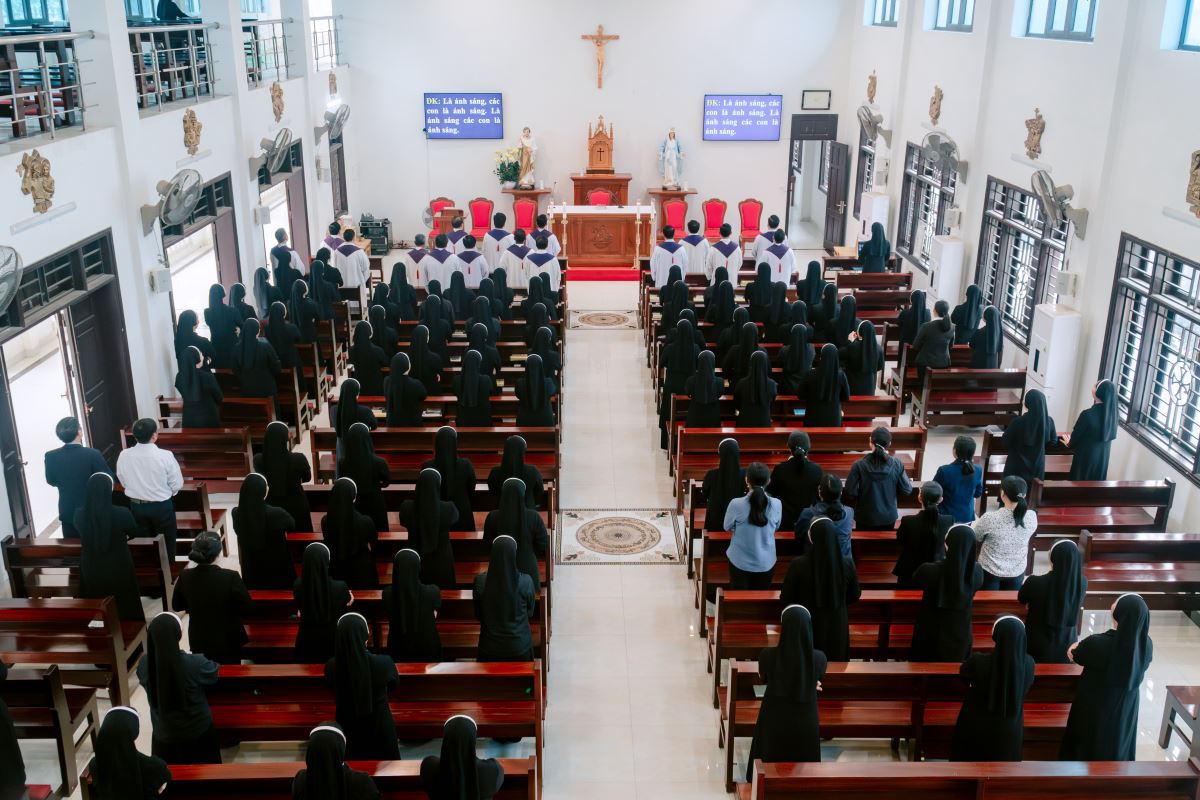 Sau giờ huấn đức, cộng đoàn hiệp dâng Thánh lễ tạ ơn lúc 15g30.