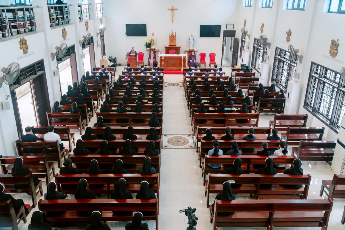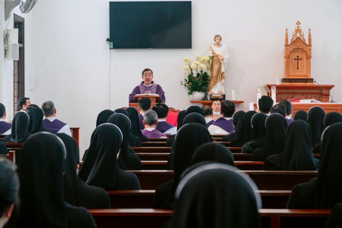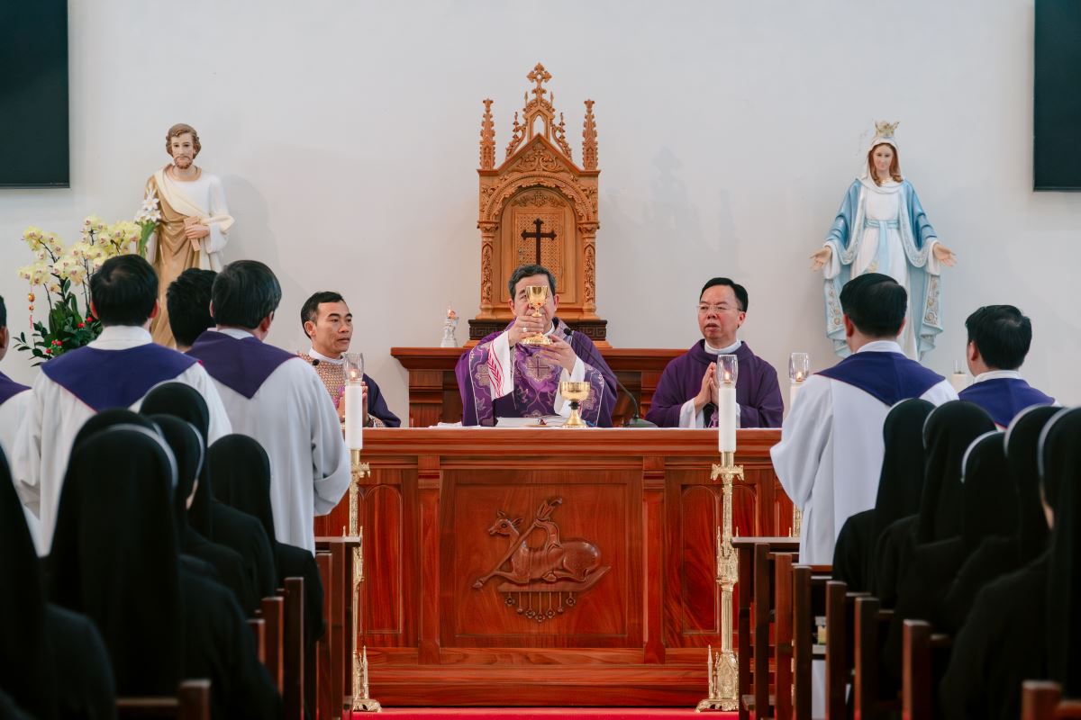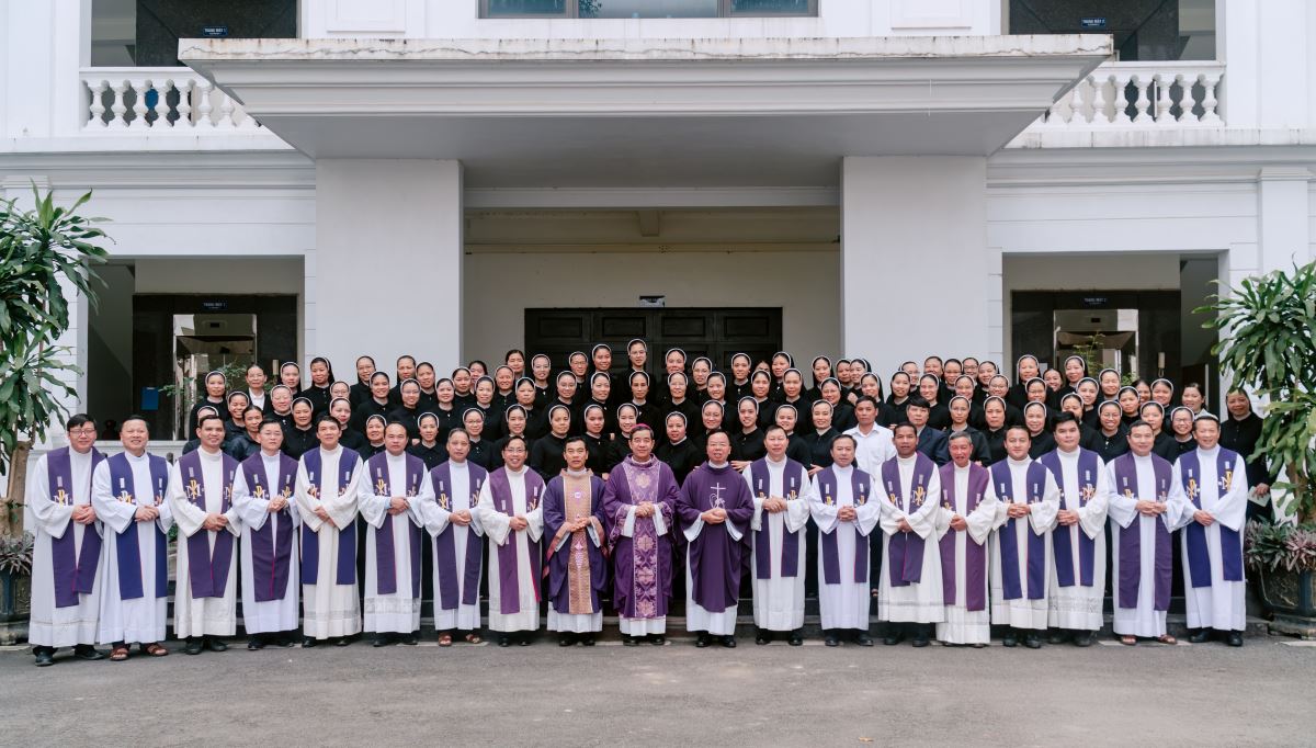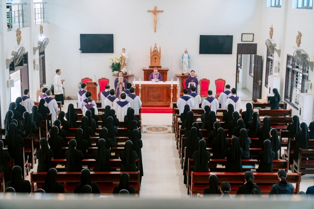 Sau giờ huấn đức, cộng đoàn hiệp dâng Thánh lễ tạ ơn lúc 15g30.