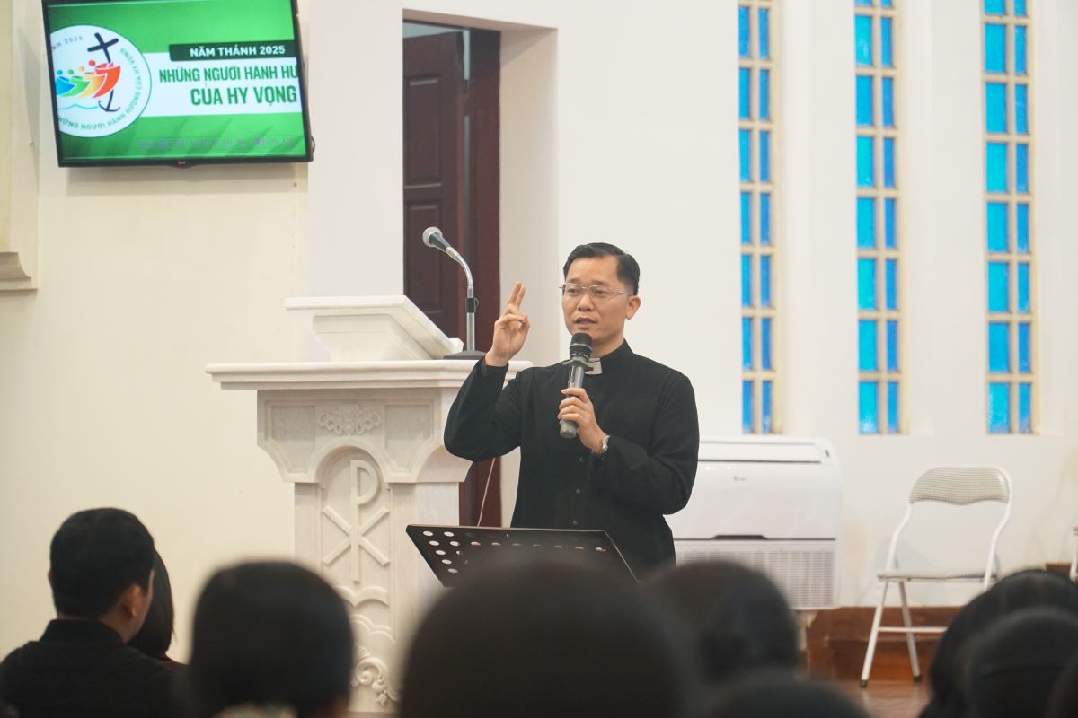 Cha trình bày những điểm then chốt của Thư Chung HĐGMVN năm 2026 và nhấn mạnh hai điểm chính: - Căn tính truyền giáo của mỗi Kitô hữu: mỗi người đã lãnh nhận Phép Rửa đều được mời gọi trở thành môn đệ thừa sai, trở thành “ánh sáng thế gian” bằng chính đời sống đức tin hằng ngày.