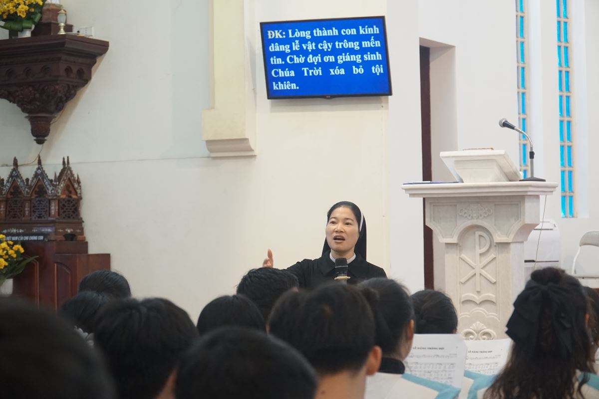 Cộng đoàn ôn hát cộng đồng dưới sự hướng dẫn của dì Têrêsa Nguyễn Thị Chiên |