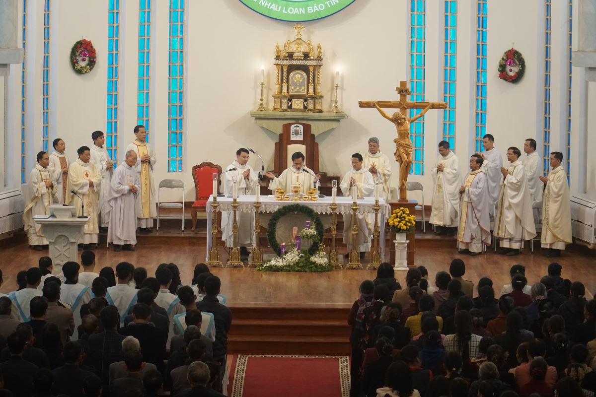 Thánh lễ đồng tế được cử hành lúc 10g15 do Cha Phêrô Lê Quốc Hưng – Cha xứ Sơn Tây chủ tế.