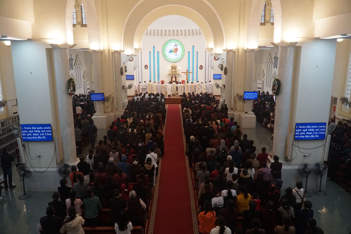 Từ Hang đá, đoàn cung kính tiến vào Nhà thờ Chính tòa, bước vào hành trình thiêng liêng gồm: lắng nghe chia sẻ tĩnh tâm, học hỏi Thư Chung, lãnh nhận Bí tích Hòa giải và tham dự Thánh lễ.