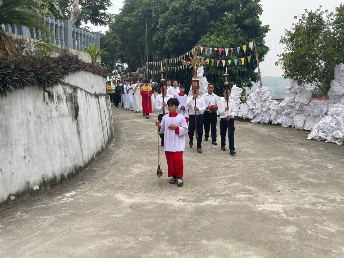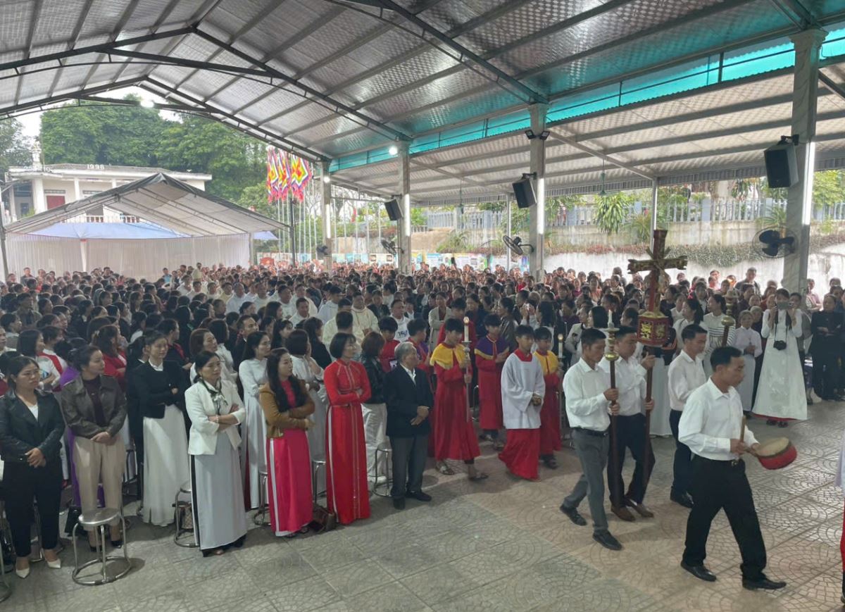 Đúng 8g00, cộng đoàn cùng quy tụ trong nhà thờ để tham dự nghi thức khai mạc hành hương do cha Giuse Nguyễn Viết Hiệp – Quản hạt Hà Tuyên Hùng chủ sự. Trong lời khai mạc, cha quản hạt mời gọi mọi người hãy dẹp bỏ những âu lo và gánh nặng của quá khứ, để cùng nhau bước qua Cửa Năm Thánh, đi qua “cửa hẹp” để tiến vào đền thánh Chúa, nơi chan chứa ơn cứu độ mà Thiên Chúa luôn mời gọi mỗi người.