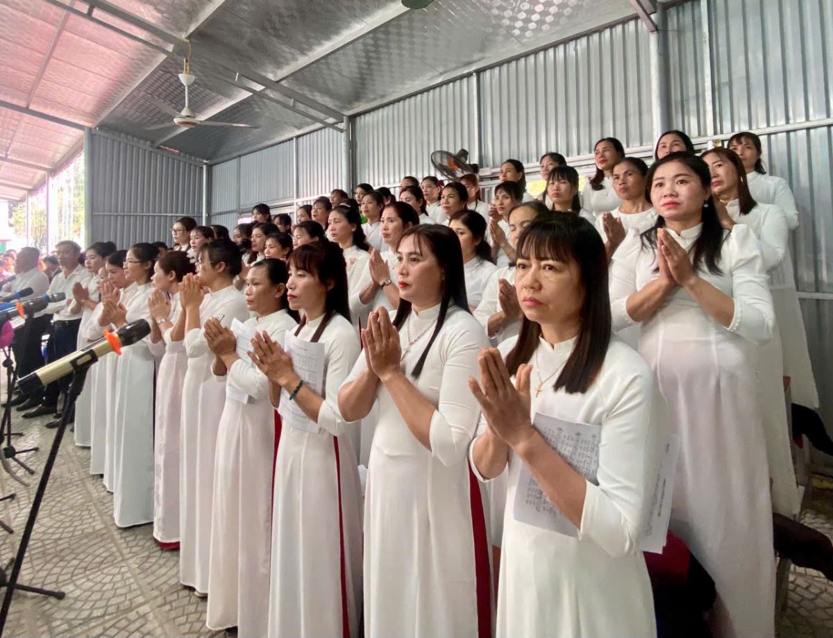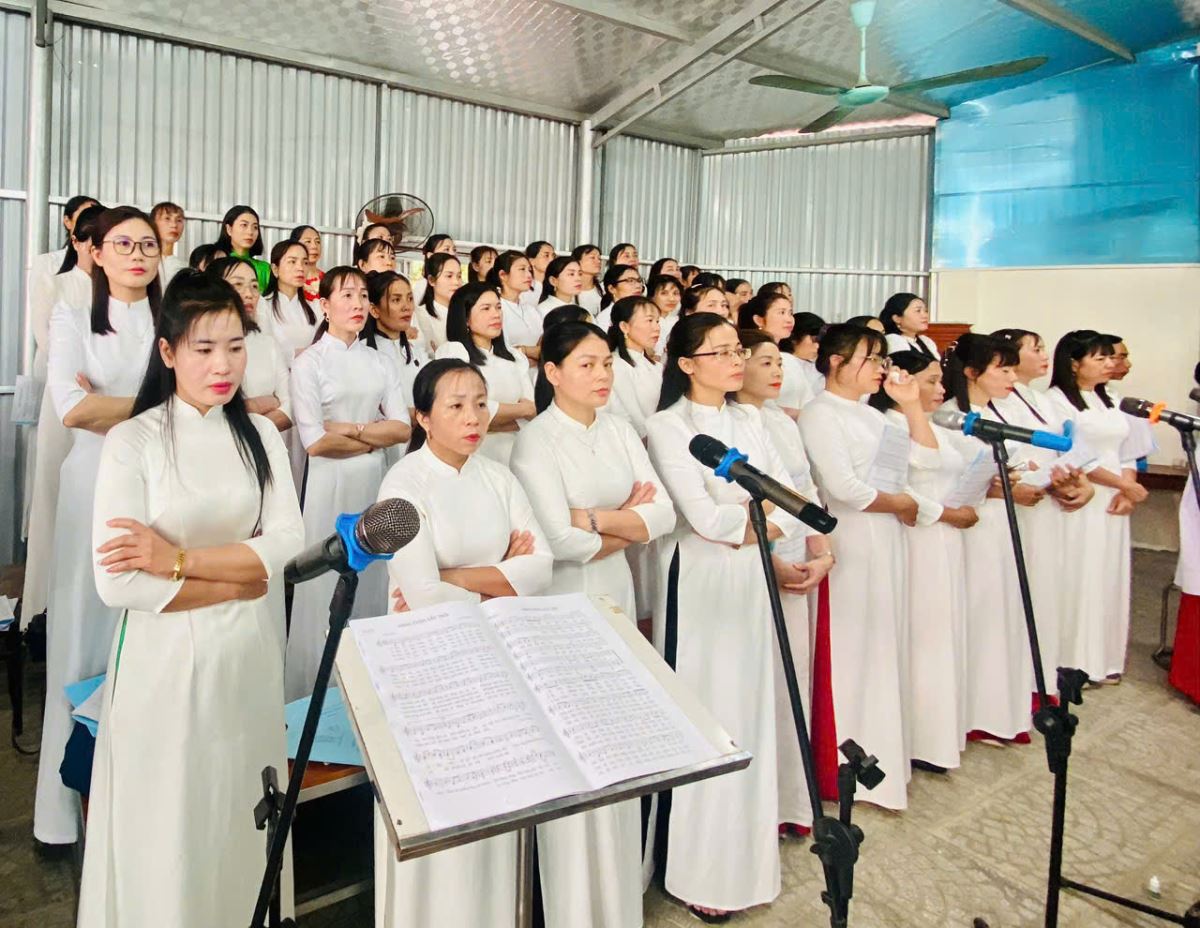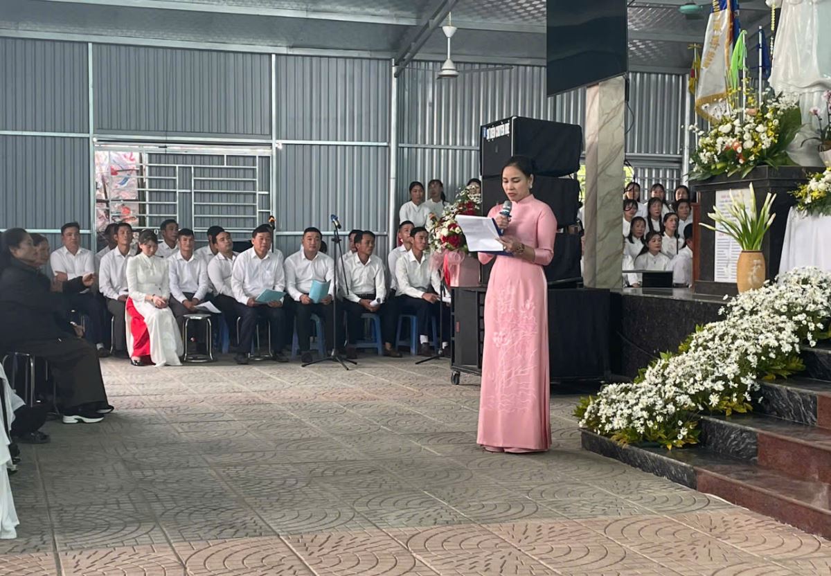 Trước khi kết thúc Thánh lễ, một đại diện các ca đoàn dâng lời tri ân Đức cha, quý cha, quý thầy và quý dì, những người đã đồng hành, hướng dẫn và nâng đỡ để các ca đoàn cũng như các ban nhạc cụ trong giáo hạt ngày một thăng tiến hơn trong đời sống đức tin và trong việc phục vụ phụng vụ.