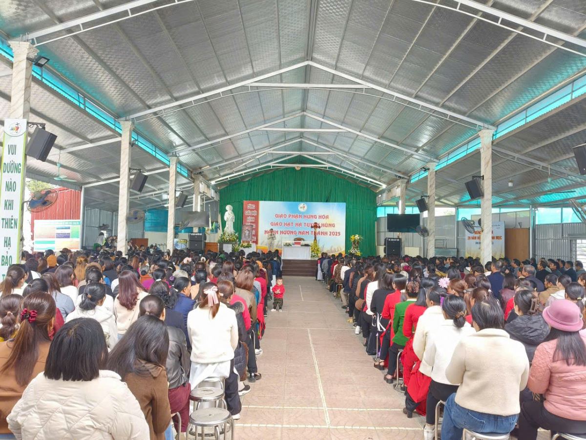 WGPHH – Thứ Tư, ngày 03.12.2025, trong niềm hân hoan mừng lễ kính Thánh Phanxicô Xaviê – quan thầy của ca đoàn giáo hạt Hà Tuyên Hùng, hơn 500 ca viên cùng với các thành viên đội kèn, đội trống và đội trắc đến từ các giáo xứ trong giáo hạt đã quy tụ tại giáo xứ Sông Chảy để tham dự ngày hành hương Năm Thánh theo chương trình của giáo hạt. Đây không chỉ là dịp để cộng đoàn gặp gỡ, lãnh nhận Bí tích Hòa Giải, tham dự Thánh lễ để được hưởng ơn toàn xá, mà còn là cơ hội để mỗi người phục vụ thánh nhạc trong phụng vụ được biến đổi, trở về với Thiên Chúa bằng một tình yêu sâu sắc hơn.