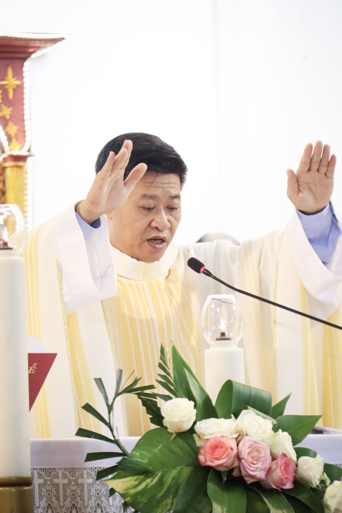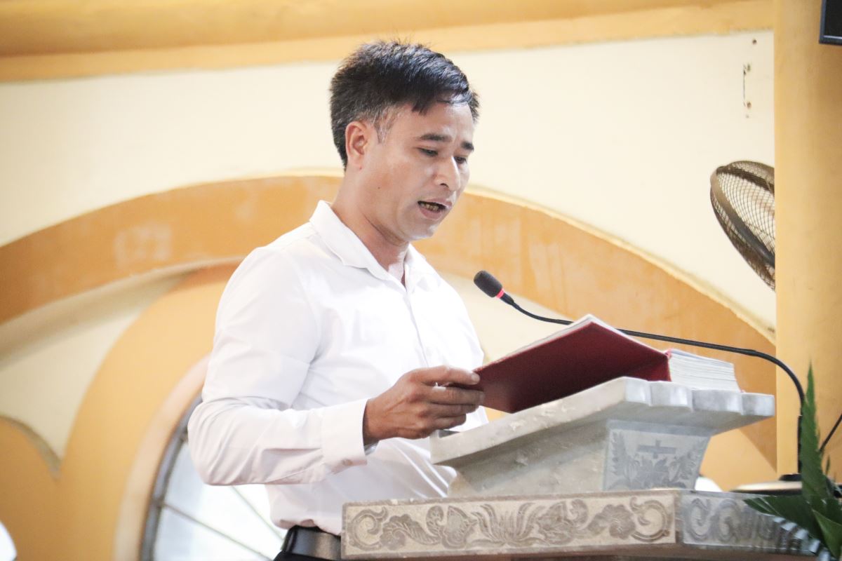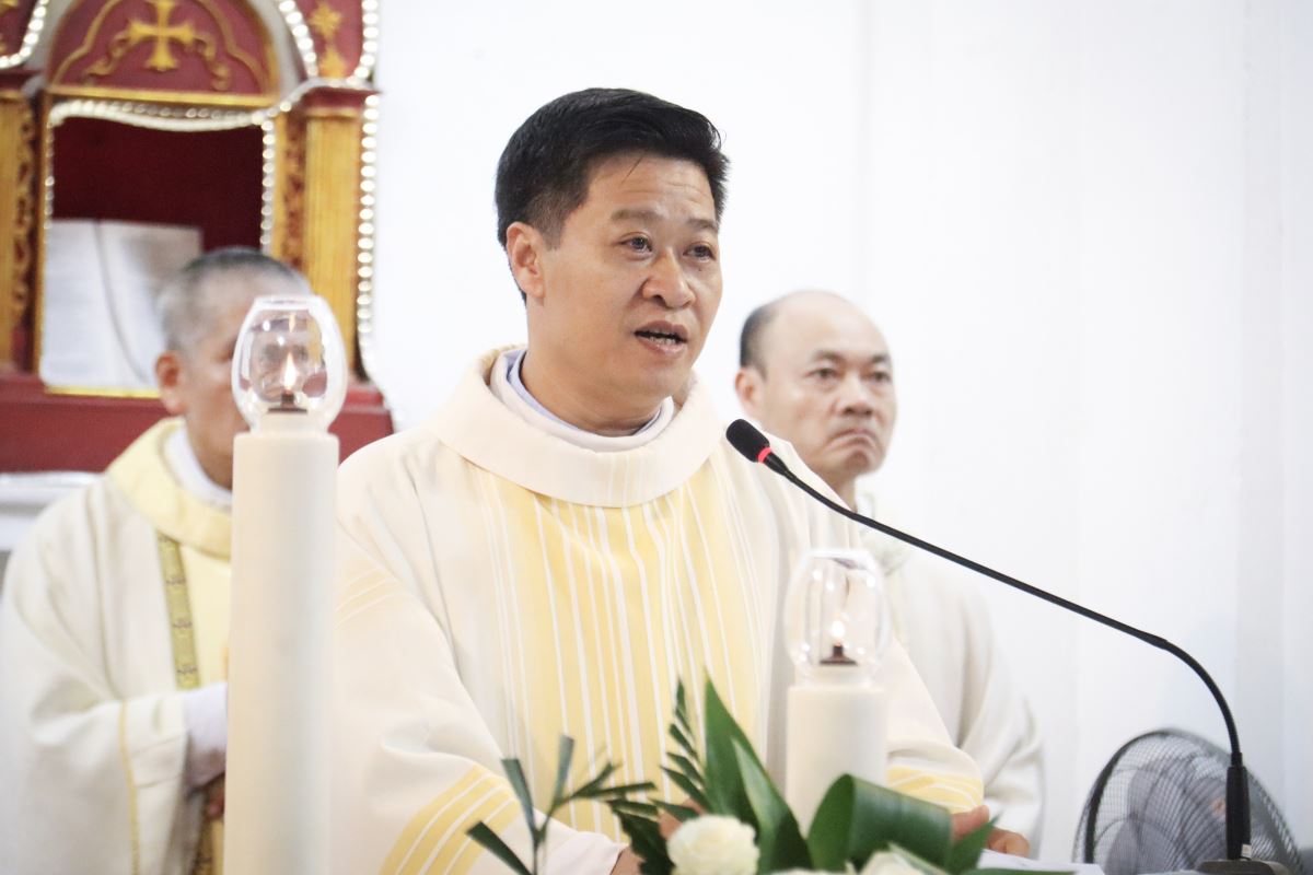 Giuse Nguyễn Văn Cường chủ sự, sau đó cung kính theo thánh giá tiến vào nhà thờ.